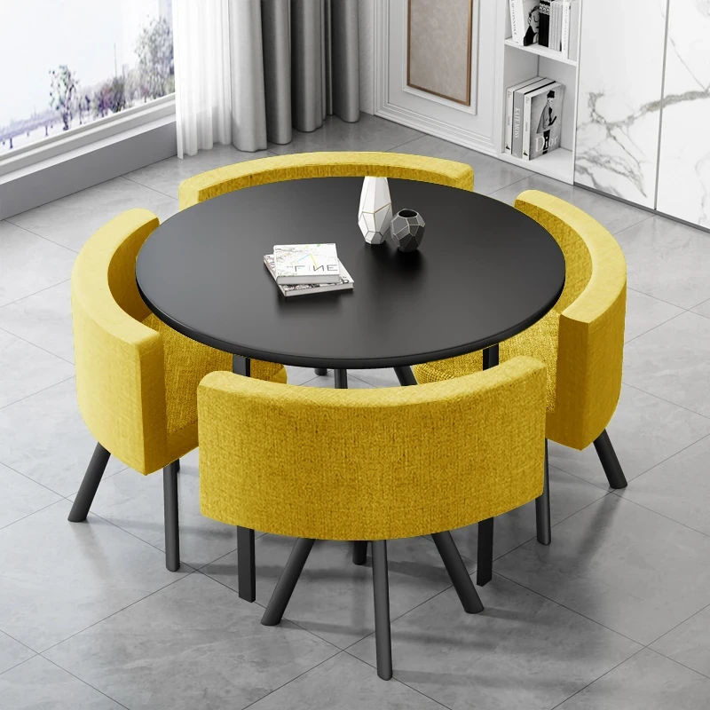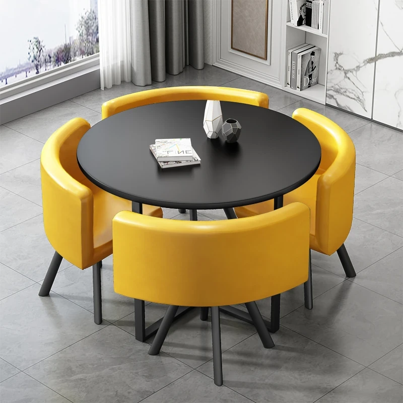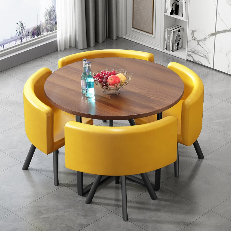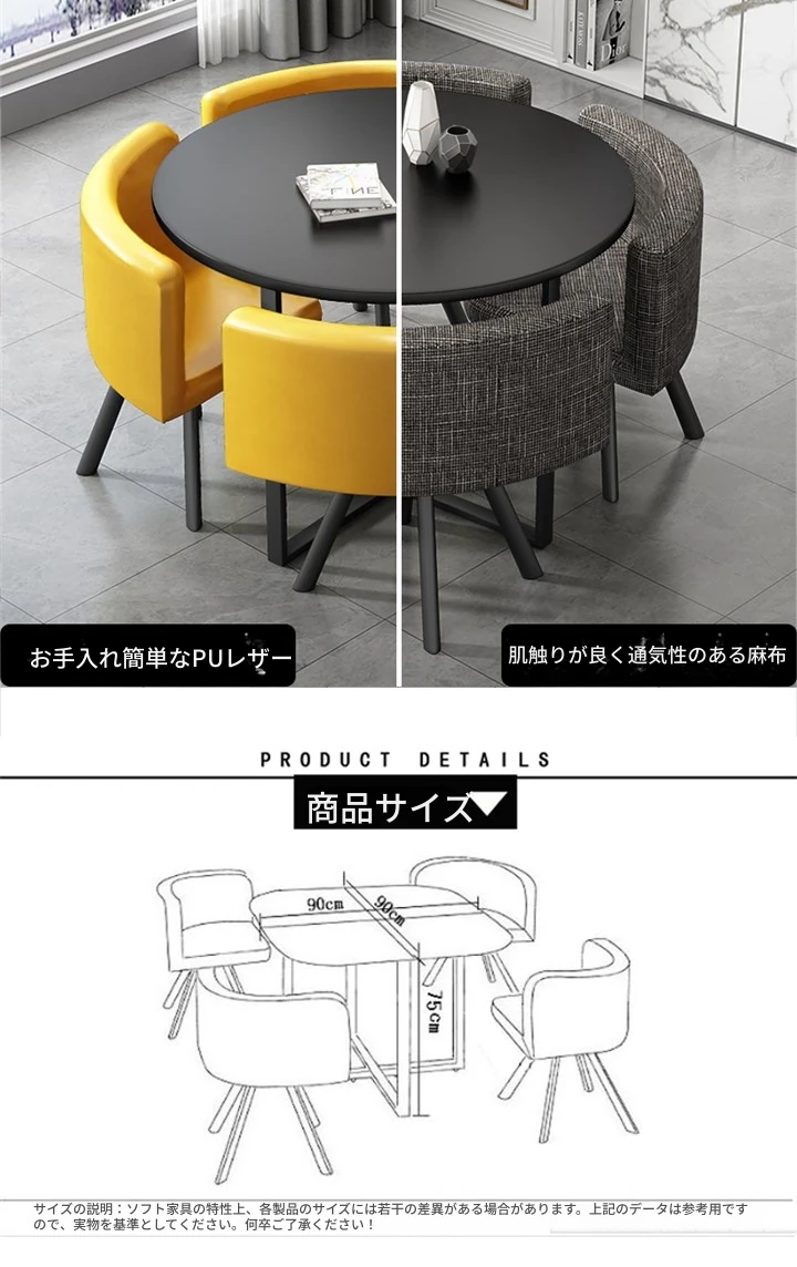 黒丸+黄皮椅子 1テーブル4椅子90*90*75