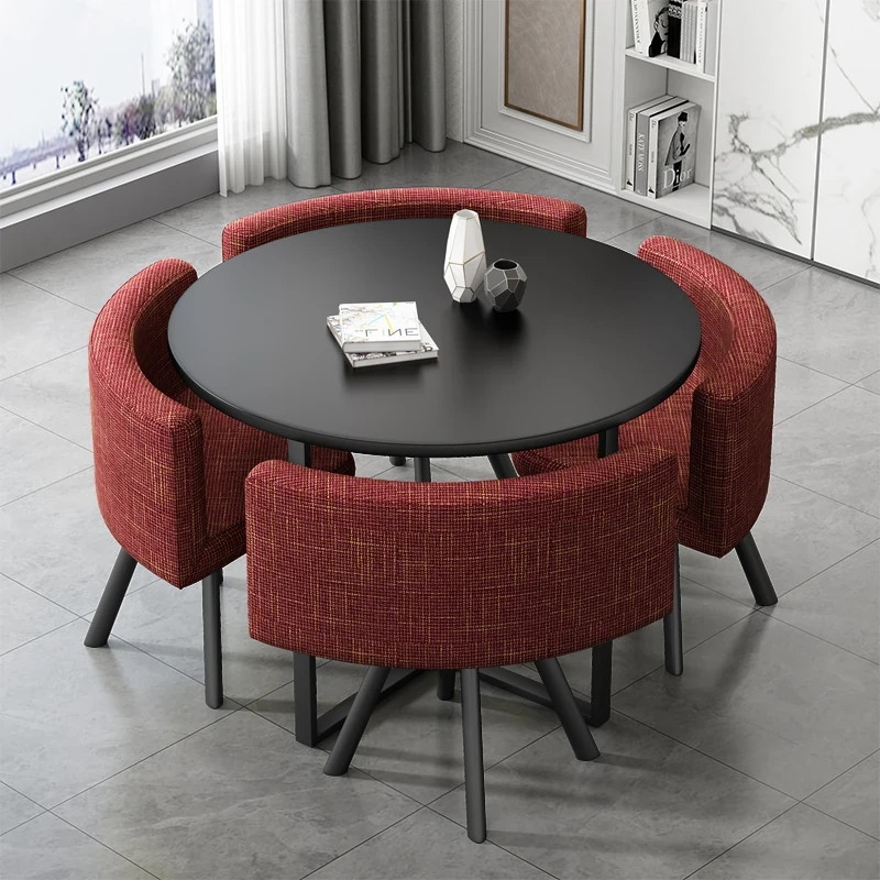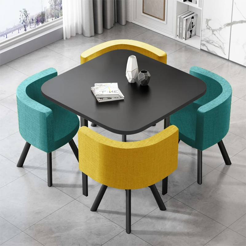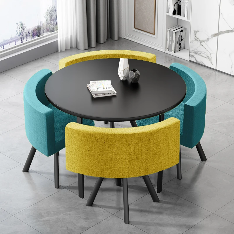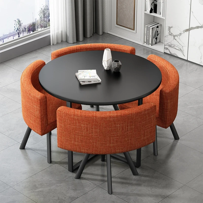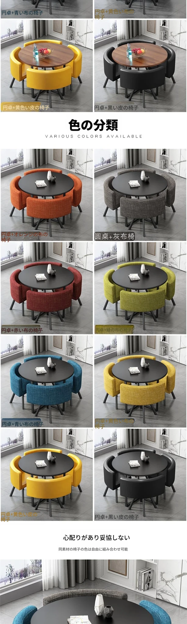 黒丸+コーヒー布椅子 1テーブル4椅子90*90*75