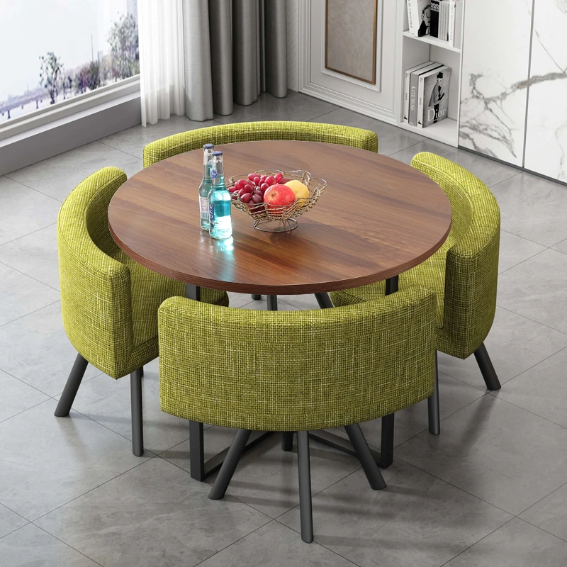 胡桃丸+緑布椅子 1テーブル4椅子90*90*75