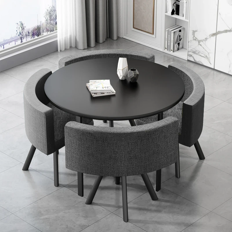 黒丸+灰布椅子 1テーブル4椅子90*90*75