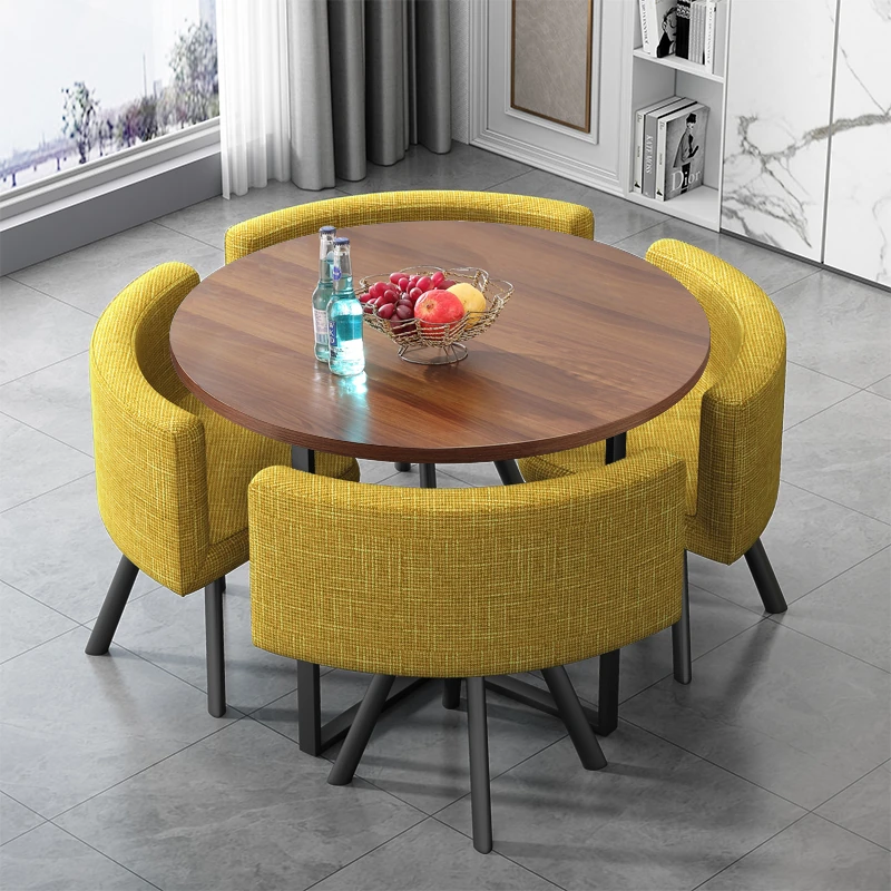 胡桃丸+黄布椅子 1テーブル4椅子90*90*75