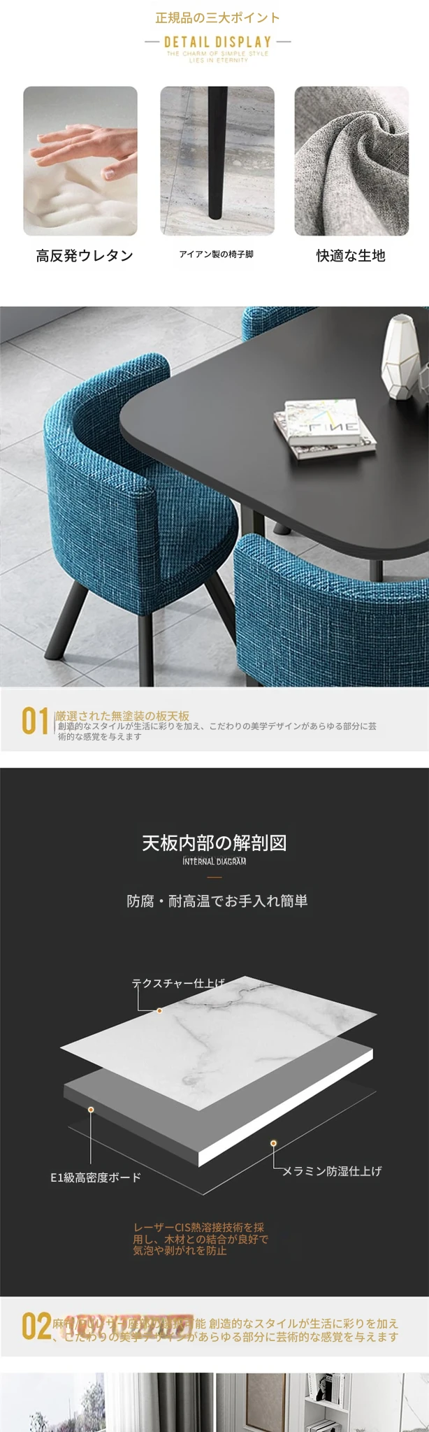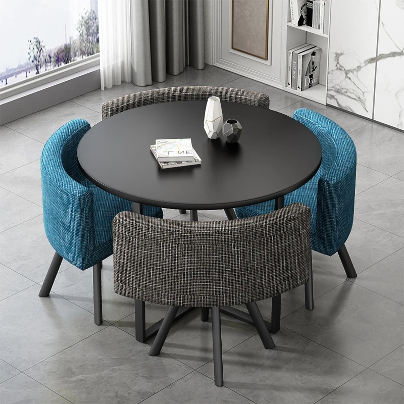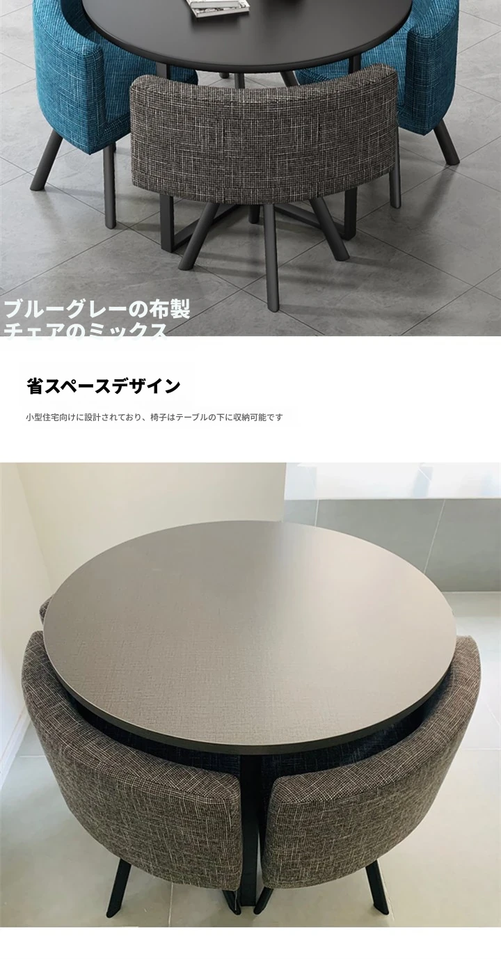 黒丸+青灰布椅子 1テーブル4椅子90*90*75