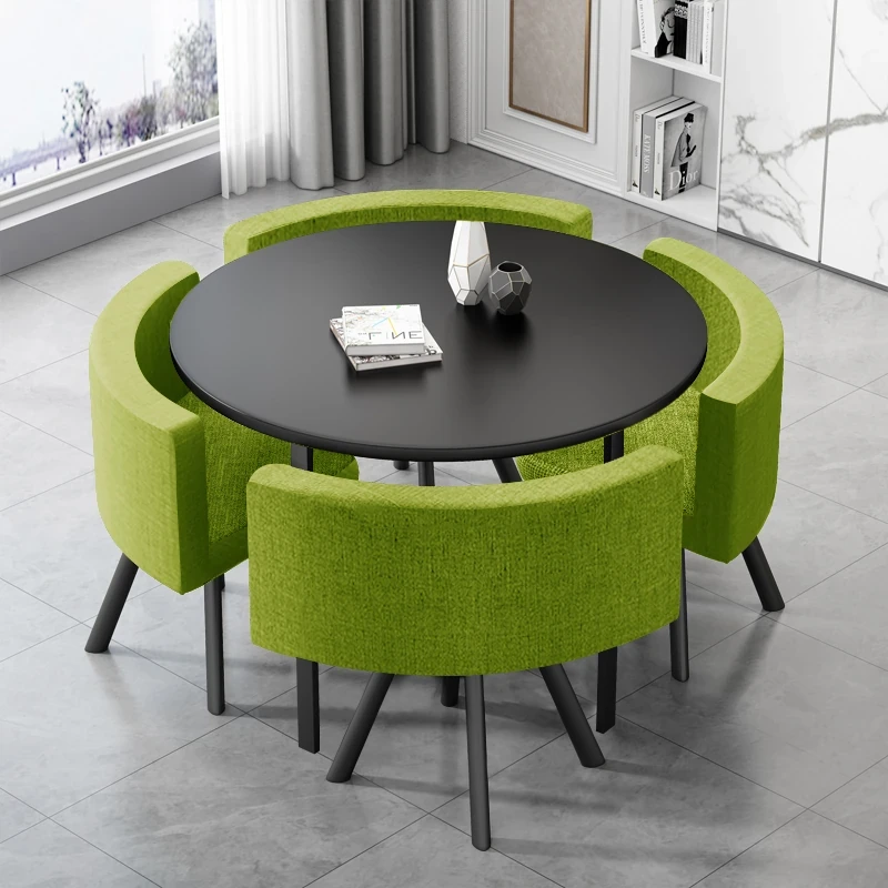 黒丸+緑布椅子 1テーブル4椅子90*90*75