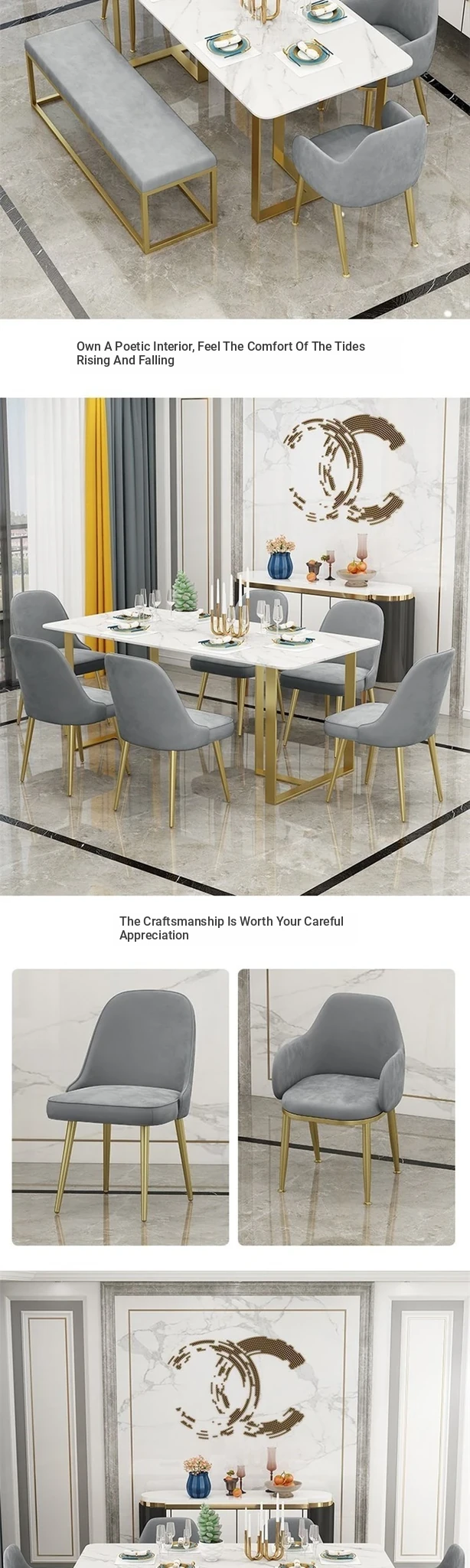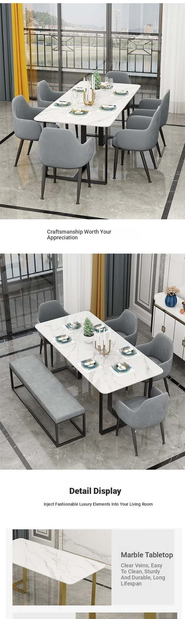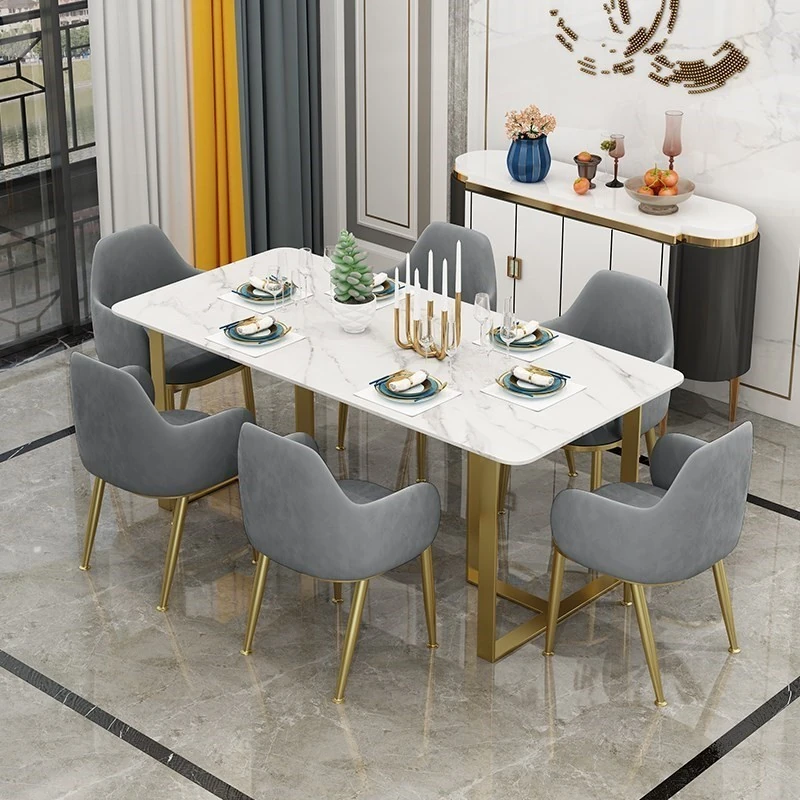 Minimalist Rectangular Marble Dining Table Set - Designer Dining Table with 4 Chairs, Perfect for Modern Homes and Stylish Dining Spaces