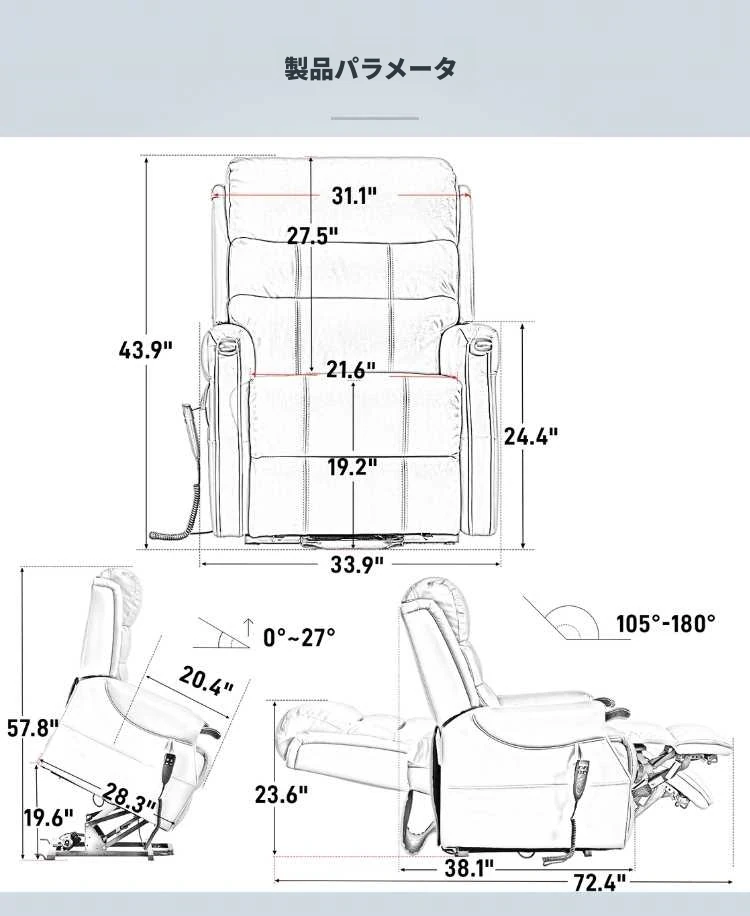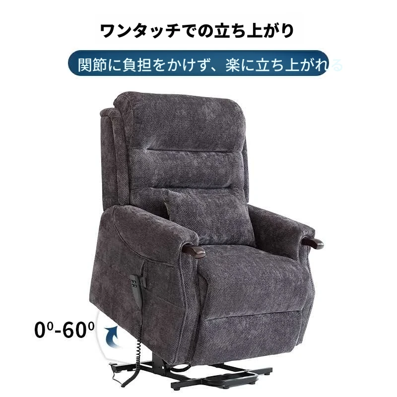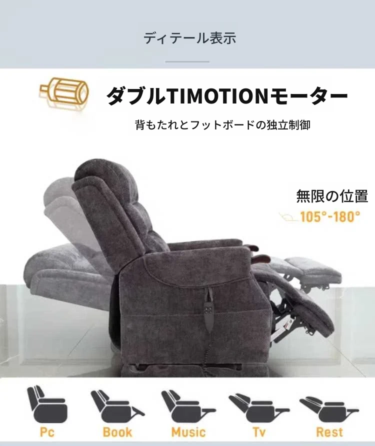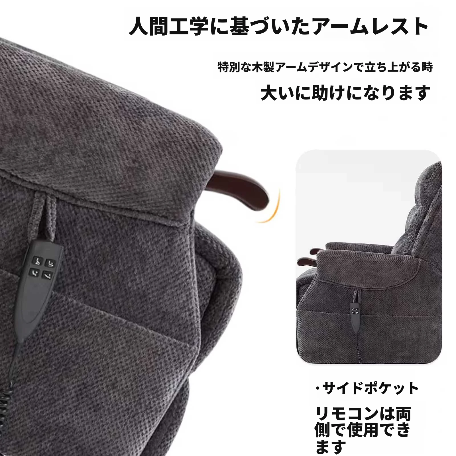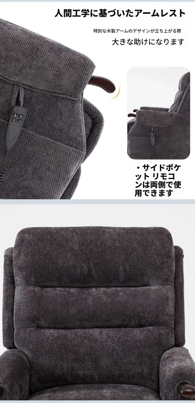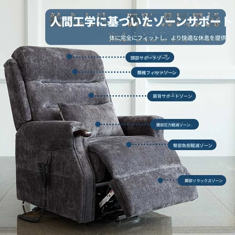 モダンな布製電動リクライニングソファ|居心地抜群のシングルソファ|高齢者にも優しいデザイン|快適な寝転びスタイル|ふわふわのシェニール素材使用