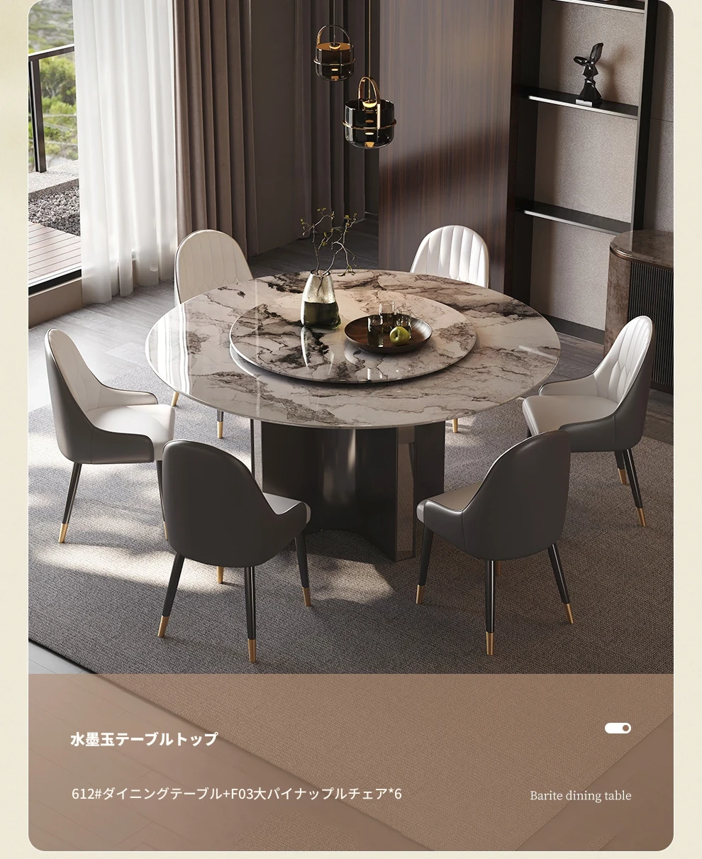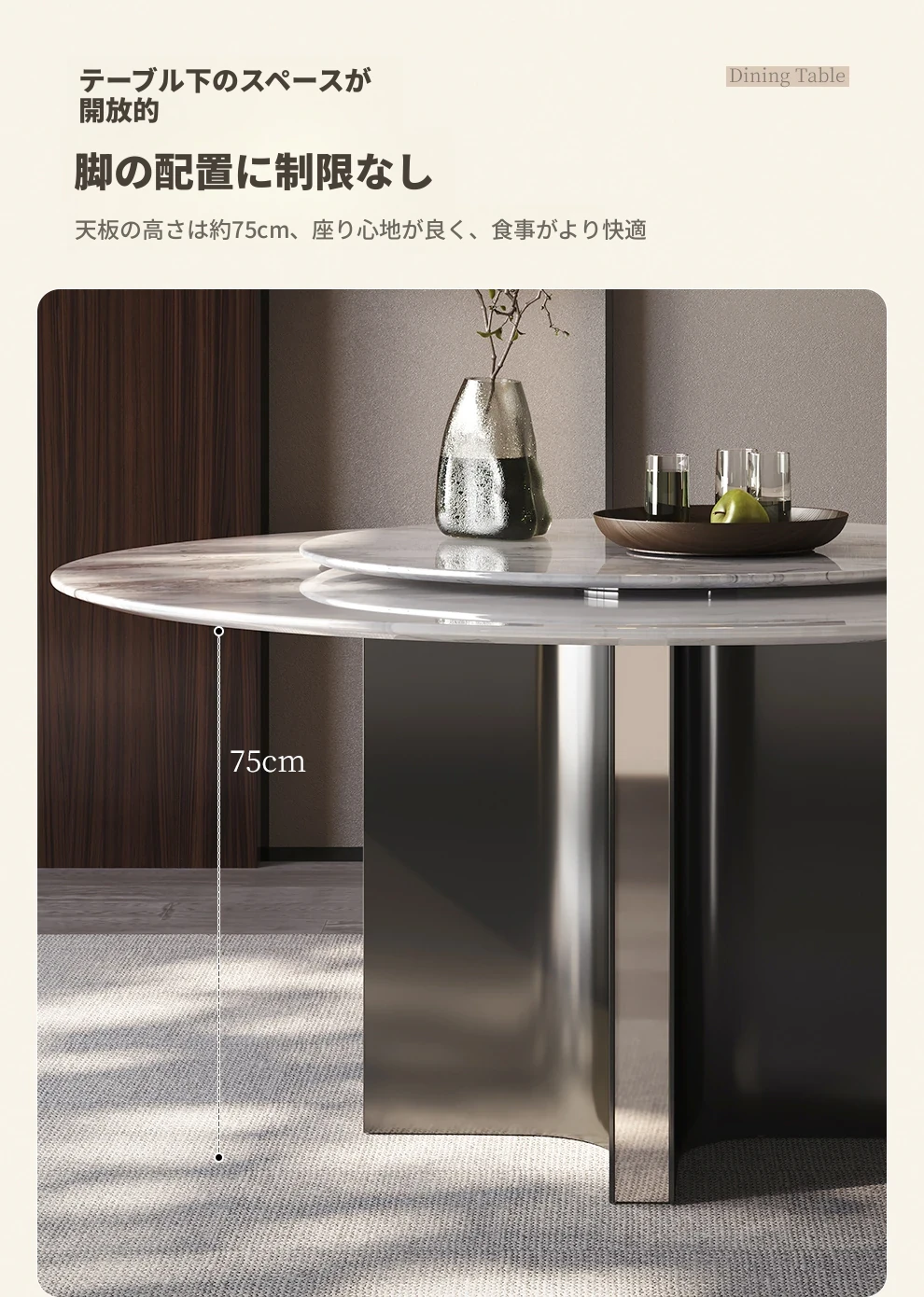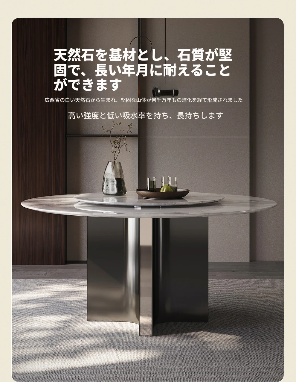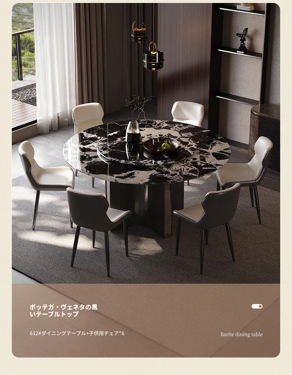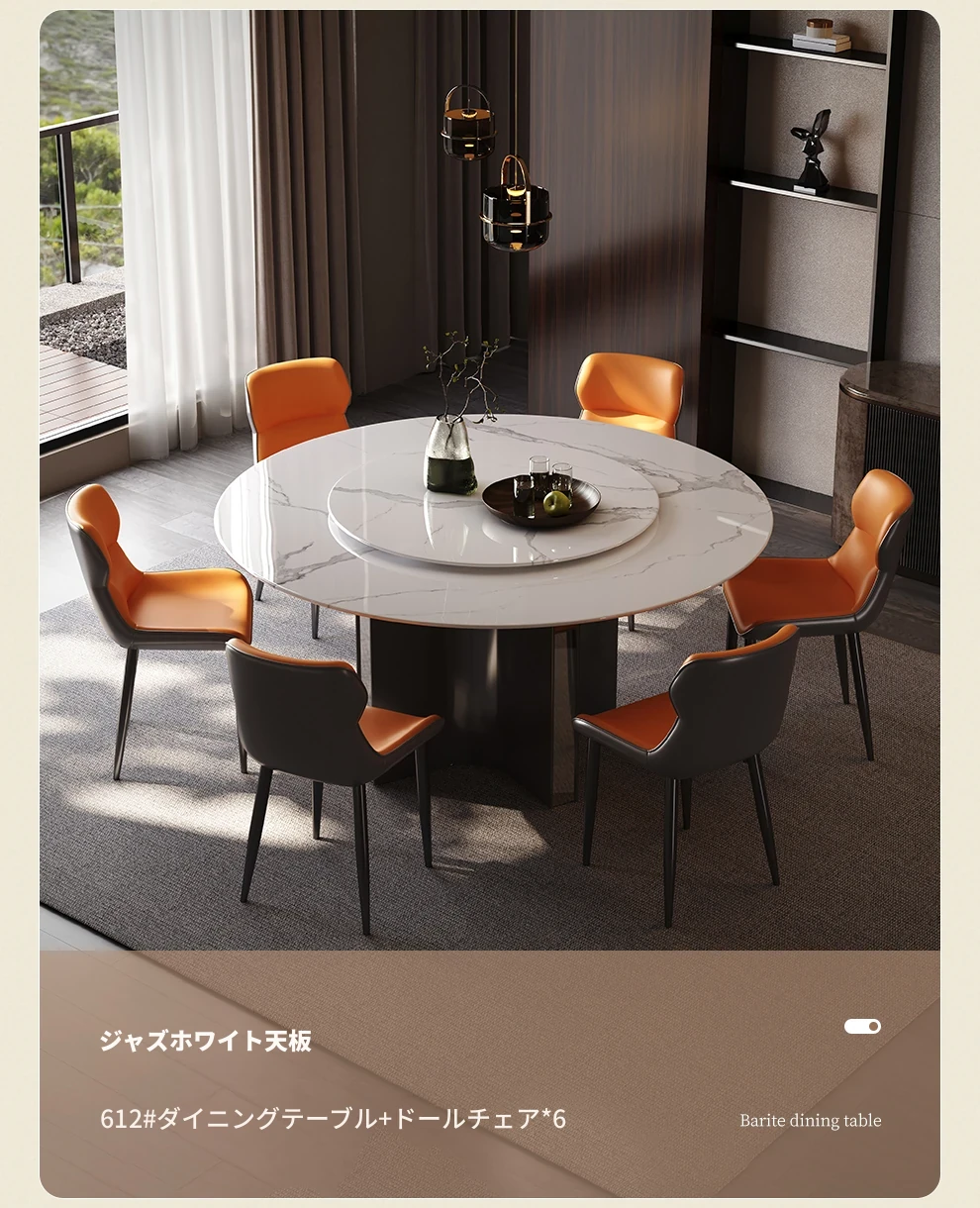 現代的シンプルでエレガントなイタリアンスタイルの大理石ダイニングテーブル - コンパクトなサイズに最適な超クリスタルストーン製の丸型テーブルと椅子のセットで、あなたの食卓を格上げします!