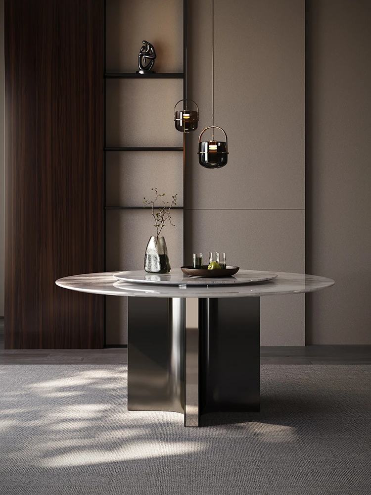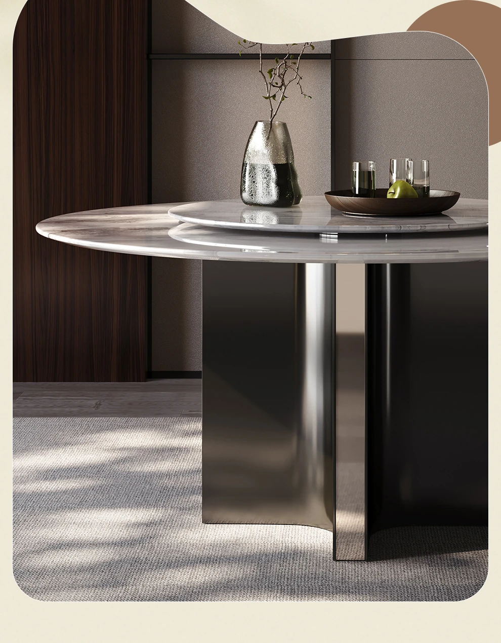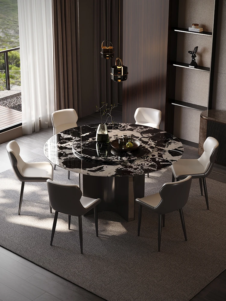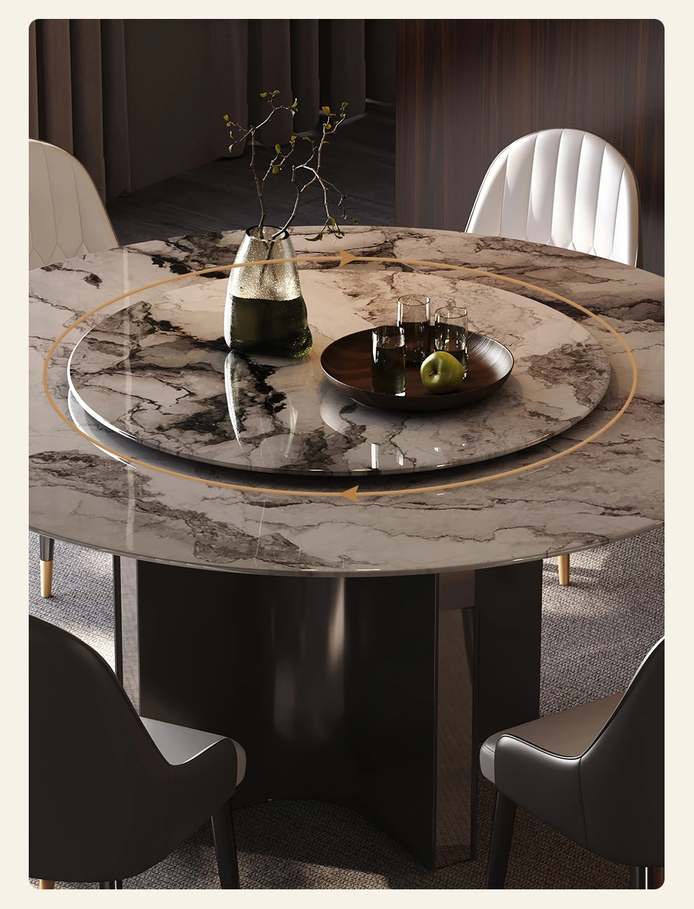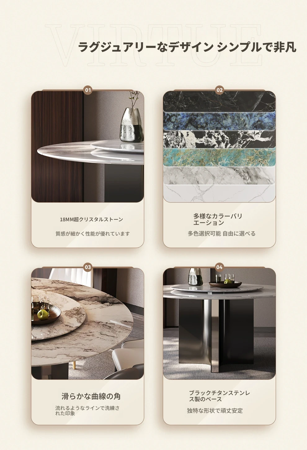 現代的シンプルでエレガントなイタリアンスタイルの大理石ダイニングテーブル - コンパクトなサイズに最適な超クリスタルストーン製の丸型テーブルと椅子のセットで、あなたの食卓を格上げします!