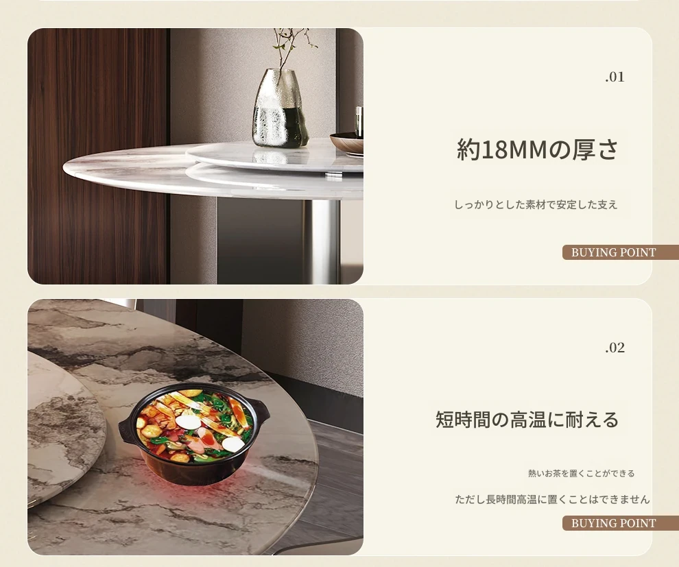 厚み18mmの超クリスタルストーン単卓 - ジャズホワイト