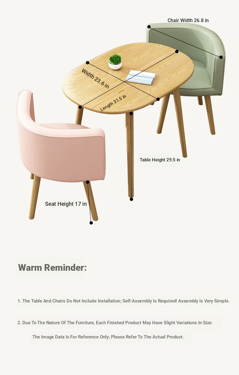 Pink 31.50in oval table +2 leather chair
