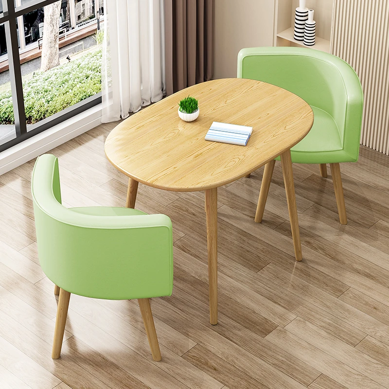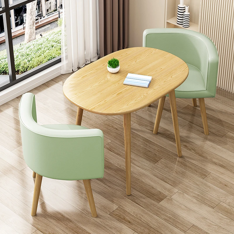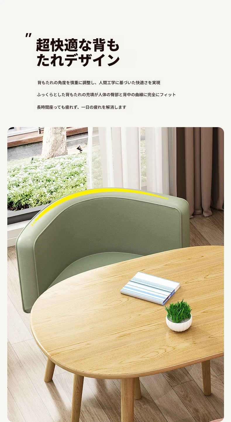 クリームグリーン80cm楕円テーブル+2レザー椅子