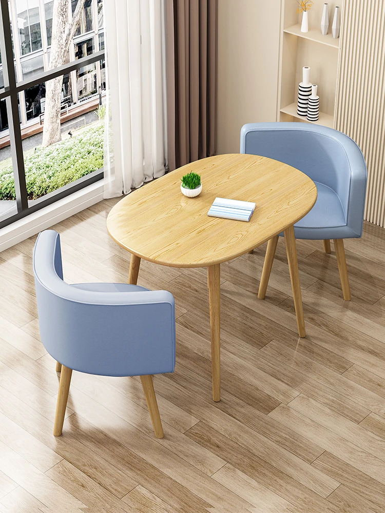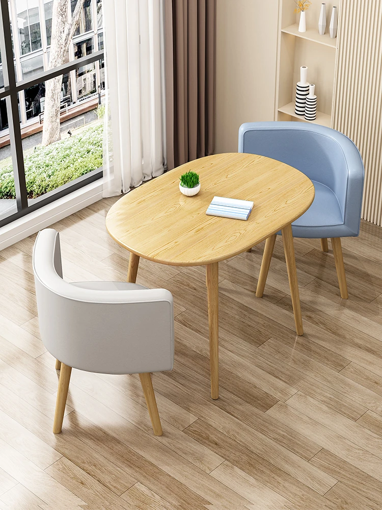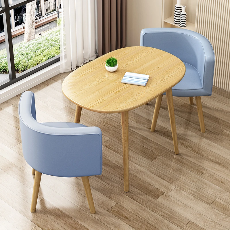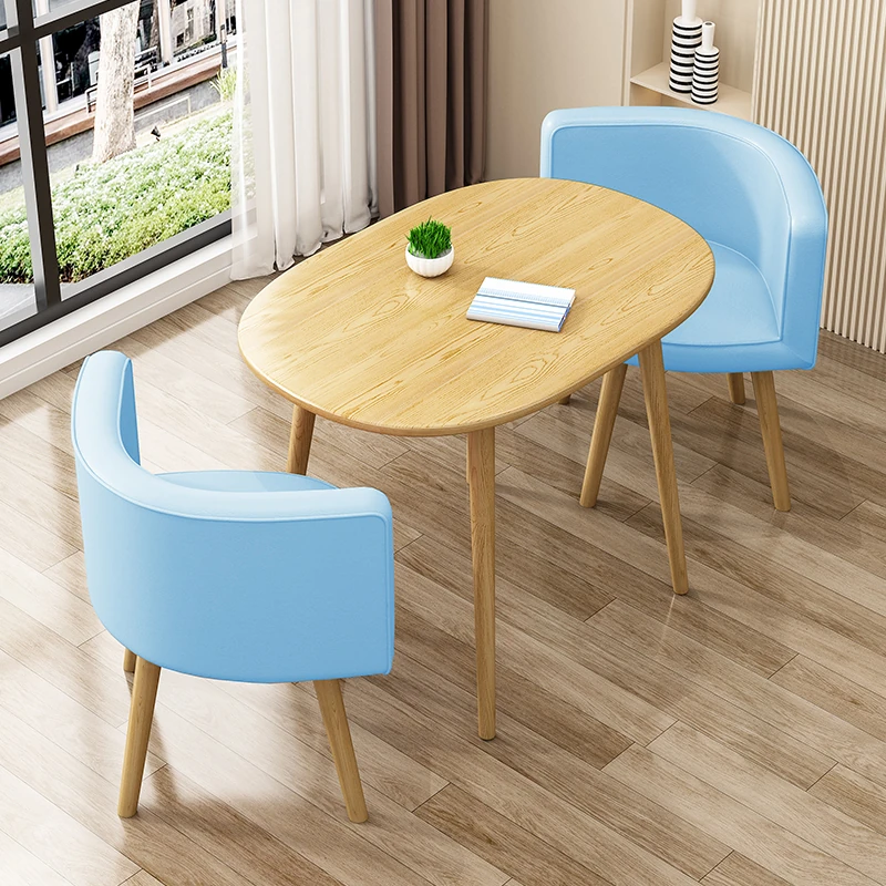 クリームブルー80cm楕円テーブル+2レザー椅子