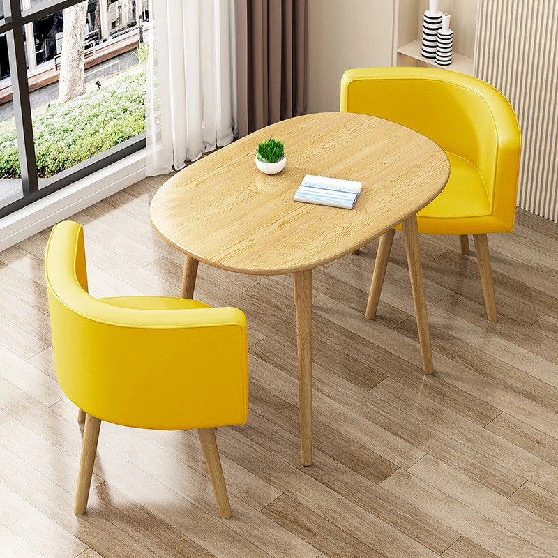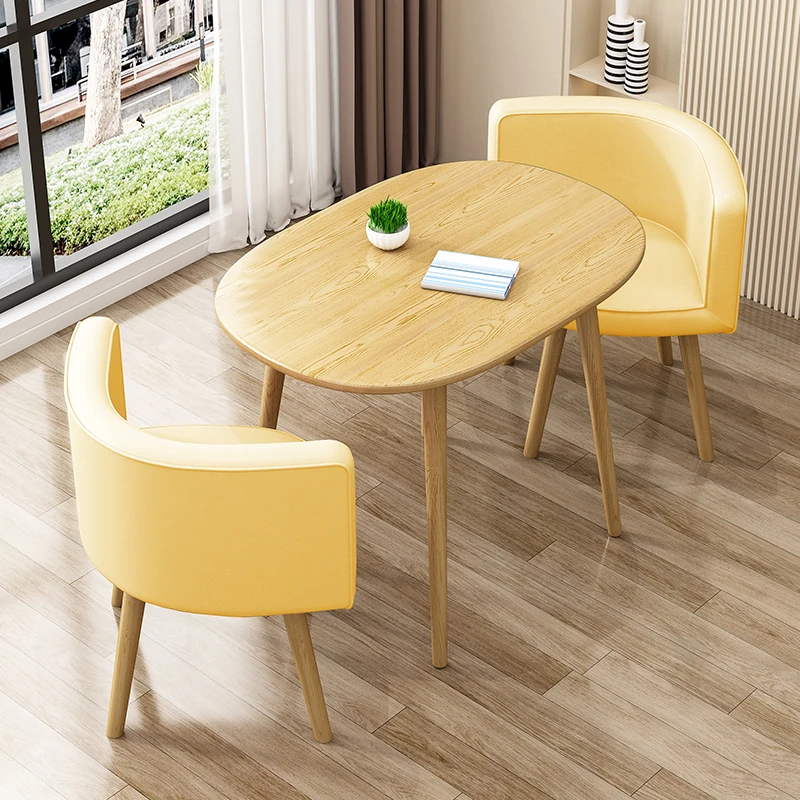 クリームイエロー80cm楕円テーブル+2レザー椅子