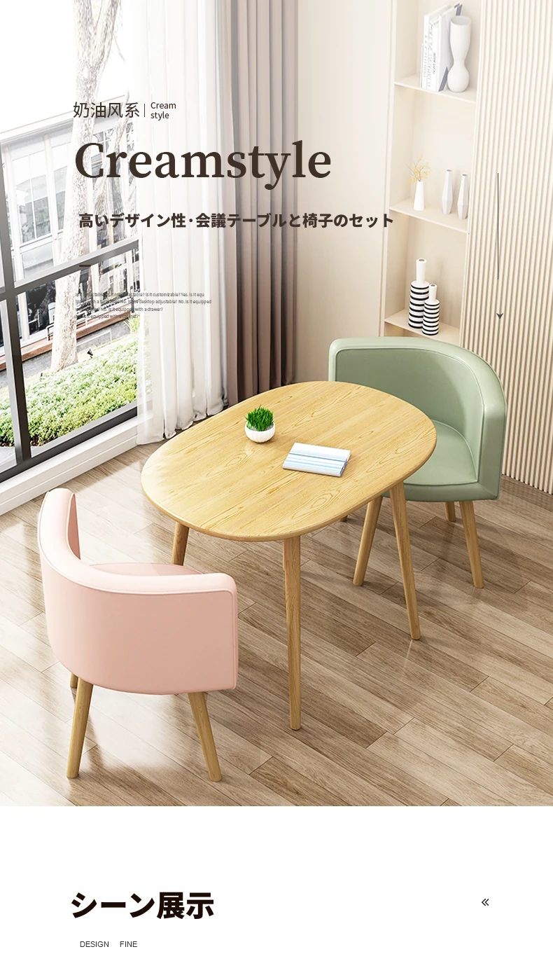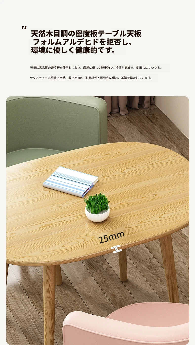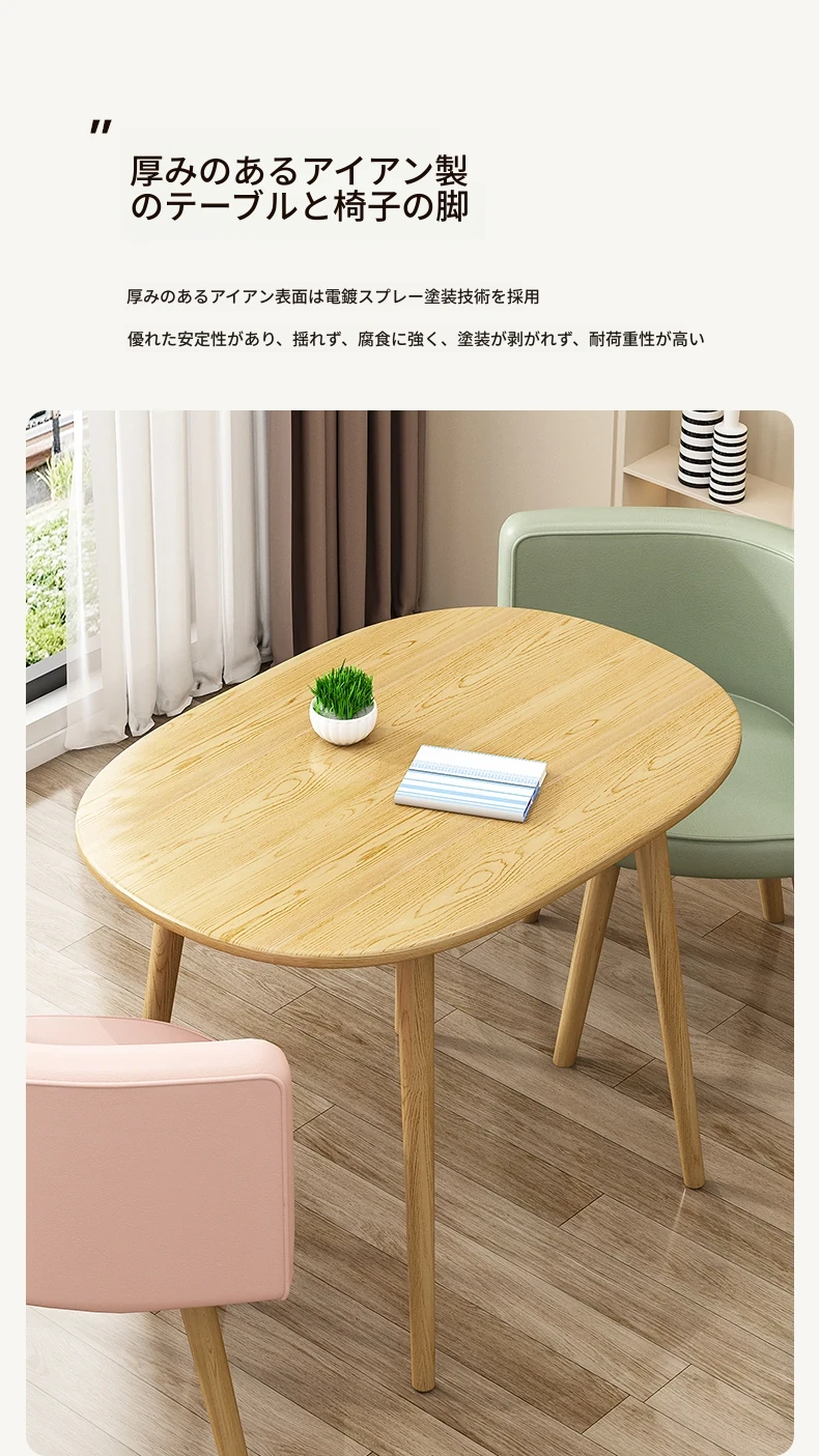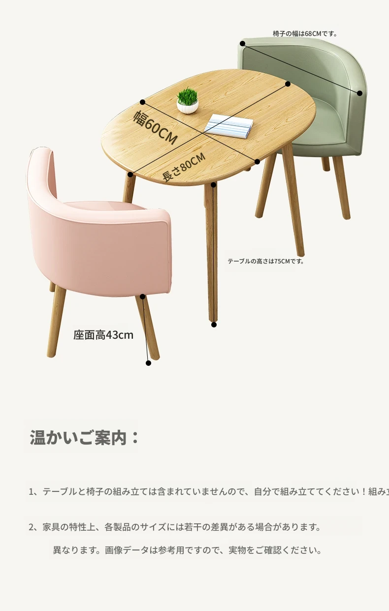 クリームピンク+クリームグリーン80cm楕円テーブル+2レザー椅子