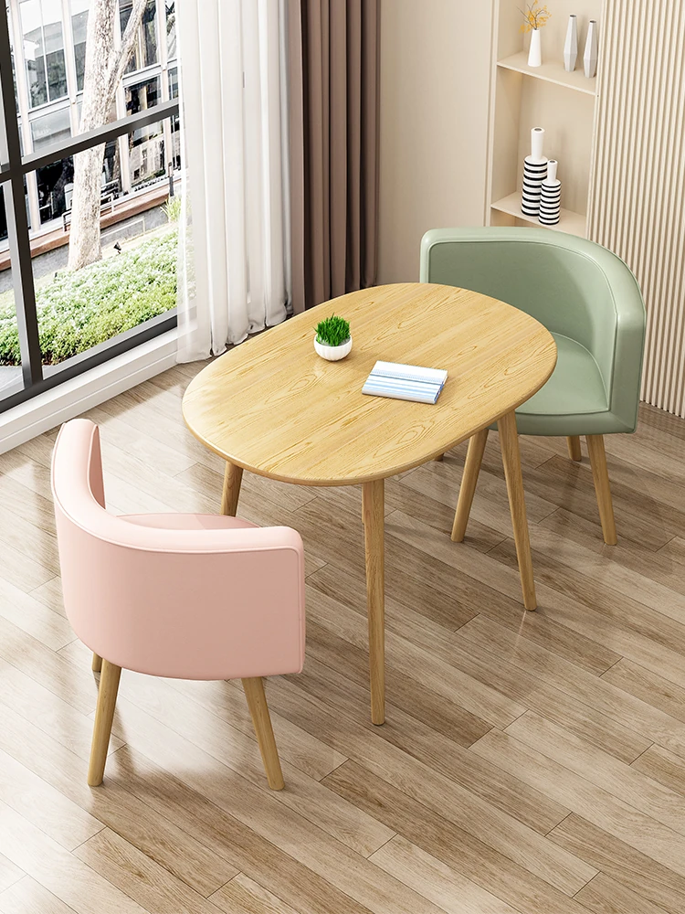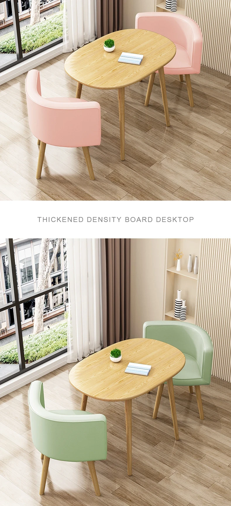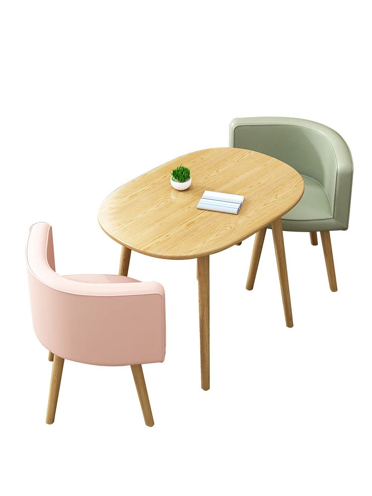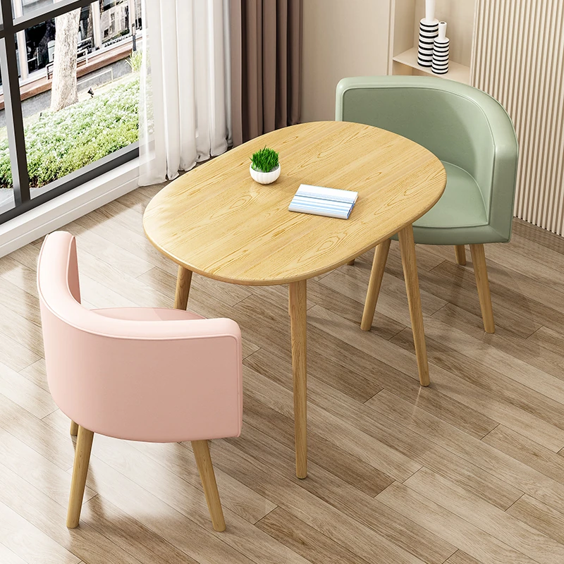 クリームピンク+クリームグリーン80cm楕円テーブル+2レザー椅子