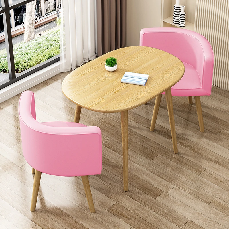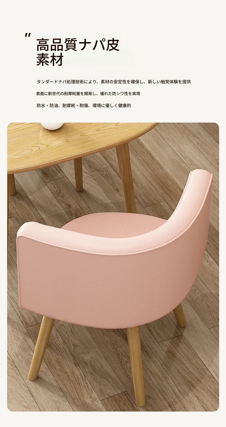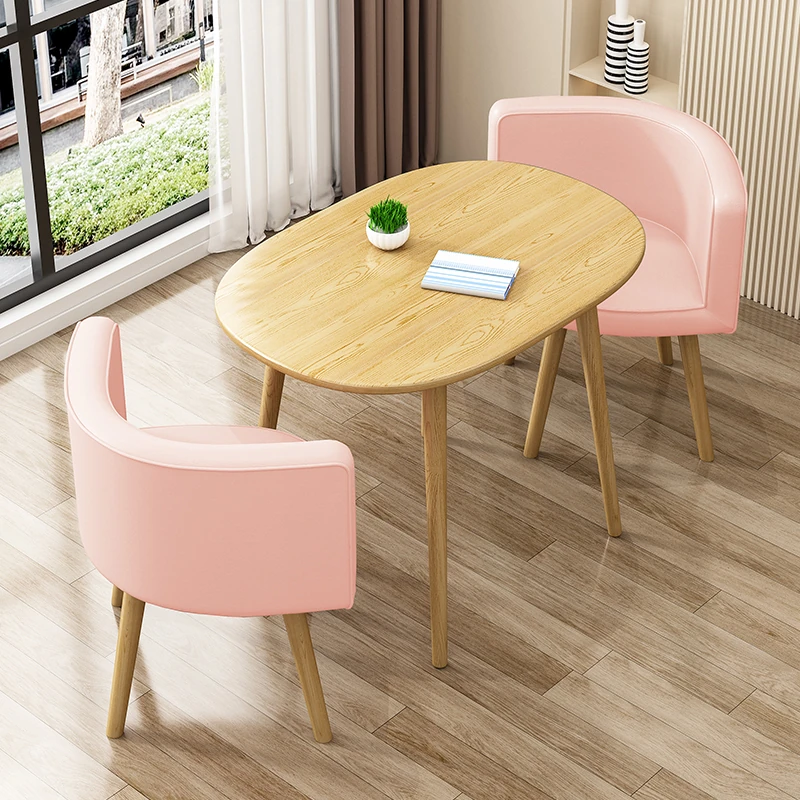 クリームピンク80cm楕円テーブル+2レザー椅子