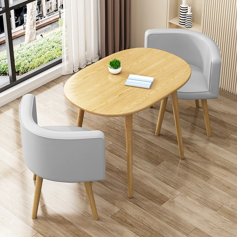 淡い灰色80cm楕円テーブル+2レザー椅子