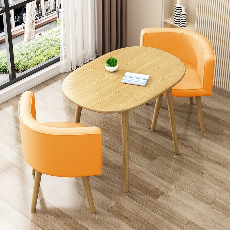 クリームオレンジ80cm楕円テーブル+2レザー椅子