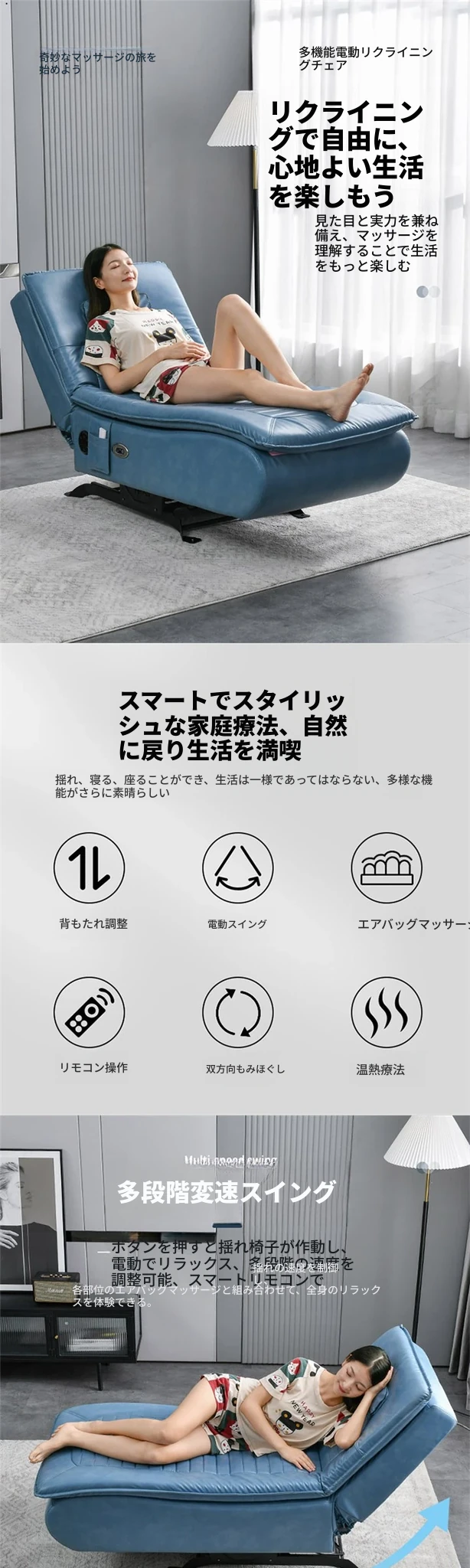 機能性ソファ・リラックスできるシンプルデザインの電動ロッキングチェア|自宅での昼寝やくつろぎに最適!クッション性抜群の貴婦人スタイルで、リビングにぴったりの心地よい椅子です。