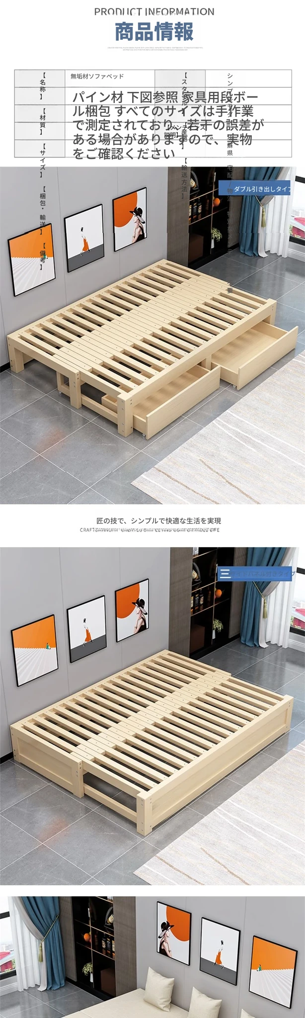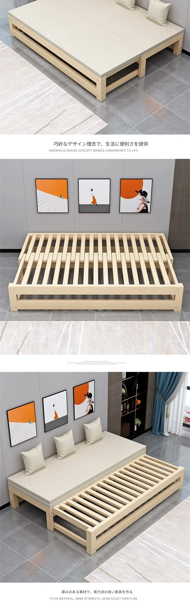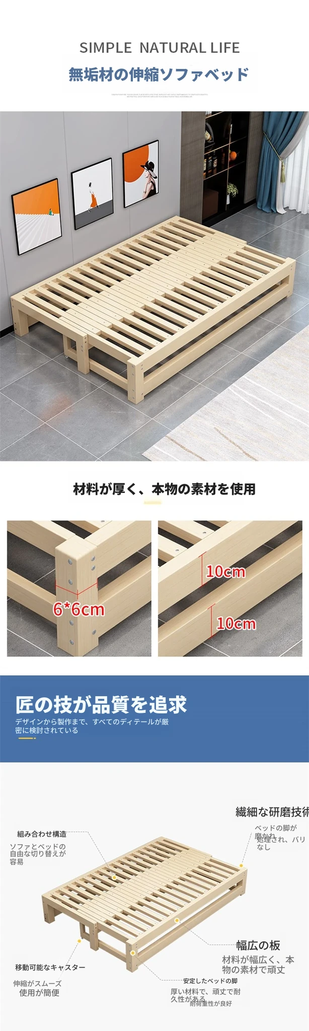 多機能折りたたみソファベッド - 小型住宅に最適!実木製、座る・寝る両用。スリムなデザインで、畳のように引き出せるシングルベッド。省スペースで快適な暮らしを実現!