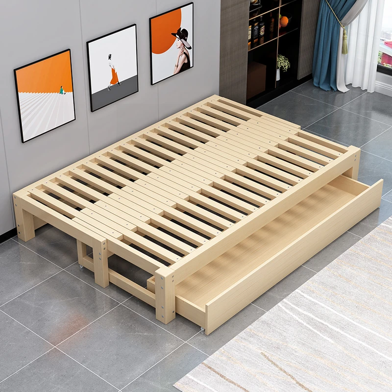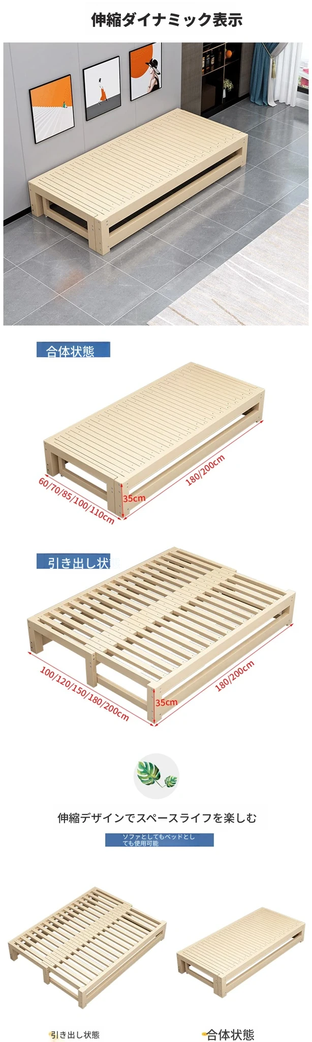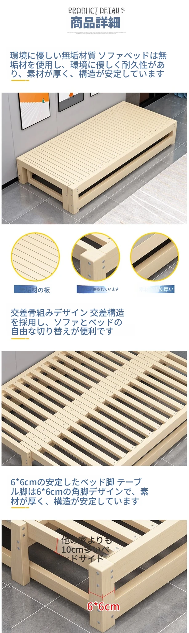 多機能折りたたみソファベッド - 小型住宅に最適!実木製、座る・寝る両用。スリムなデザインで、畳のように引き出せるシングルベッド。省スペースで快適な暮らしを実現!
