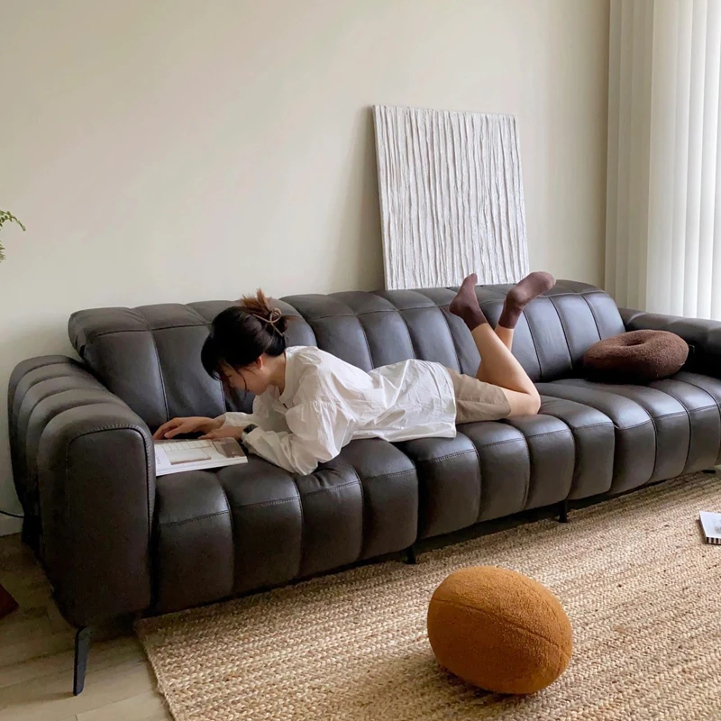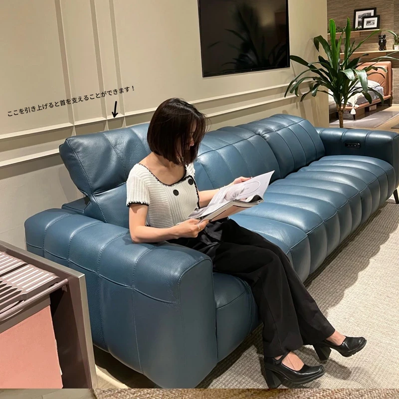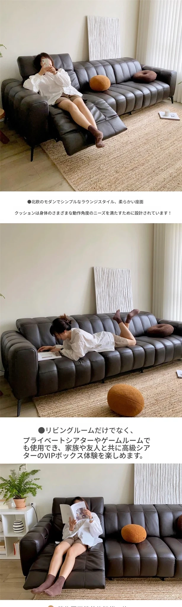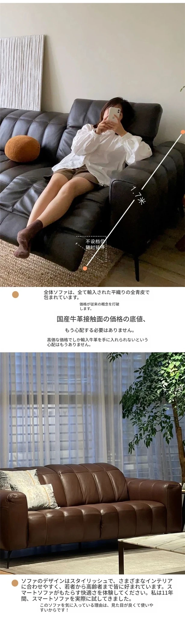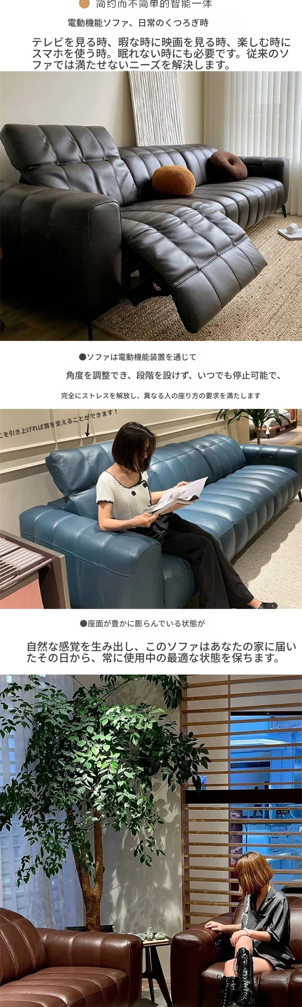 ナチュラルモダン電動多機能本革ソファ - シンプルなデザインで小さなお部屋にもぴったり!快適な座り心地とスタイリッシュな雰囲気を両立した、現代的なリビング家具。