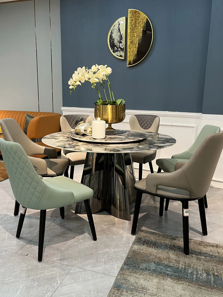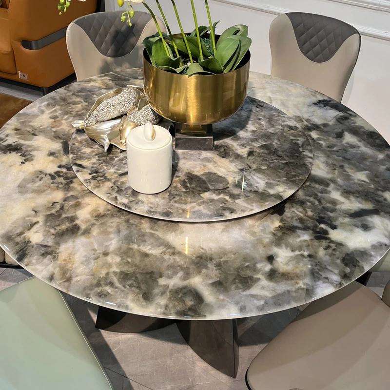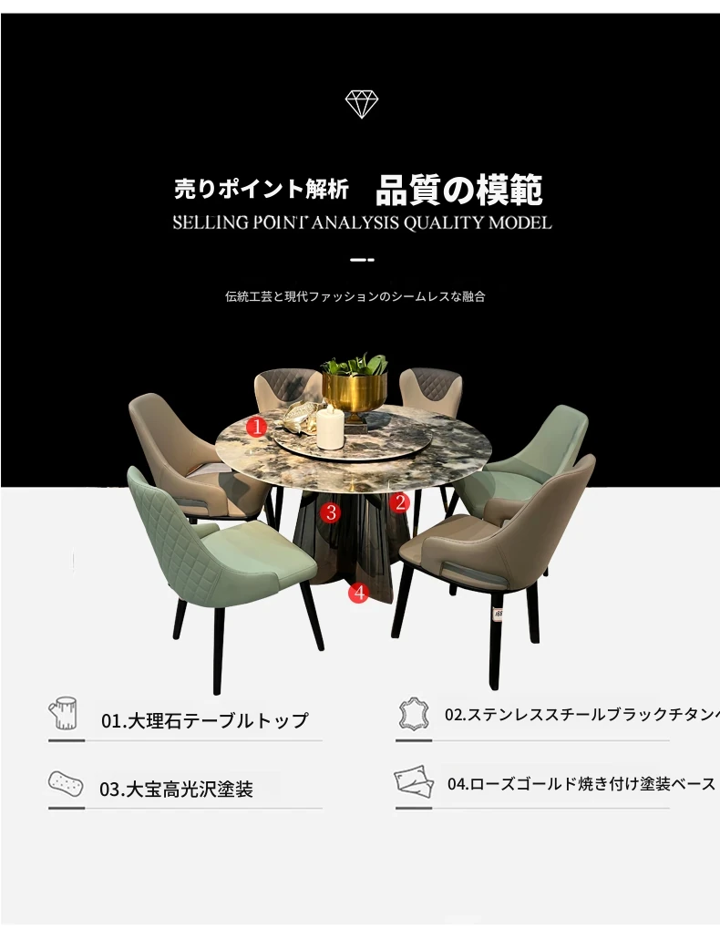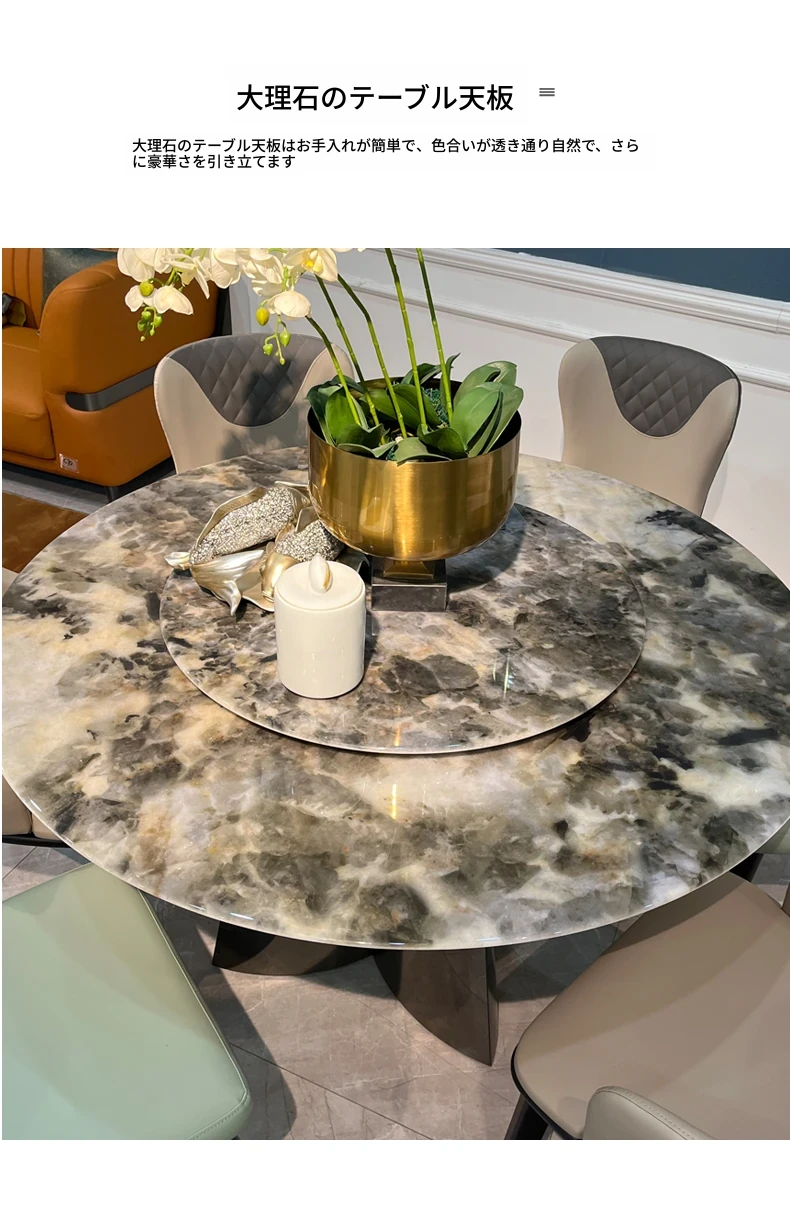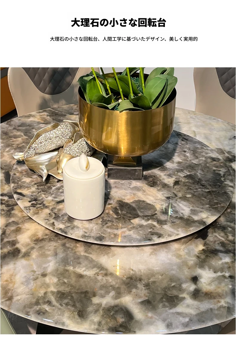 天然の贅沢石大理石ダイニングテーブル|家庭用イタリアンラグジュアリー岩板|超クリスタルストーンラウンドテーブル&チェアセット|優雅な食卓を演出します!