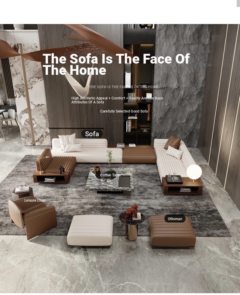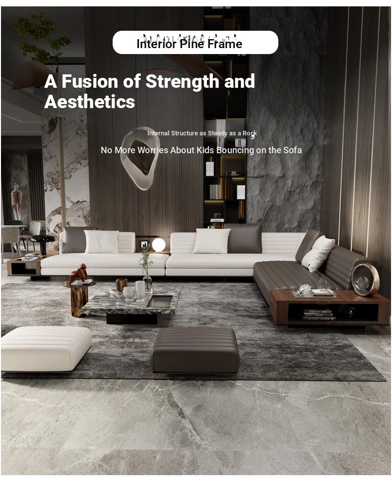 New Italian Genuine Leather Scratch-Resistant Cat Paw Sofa - Minimalist Roger Villa U-Shaped Corner Design for Spacious Living Rooms - Foshan Furniture