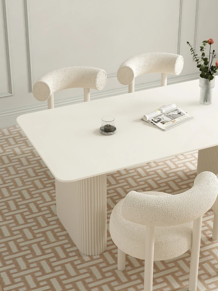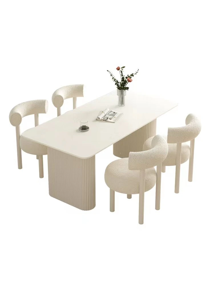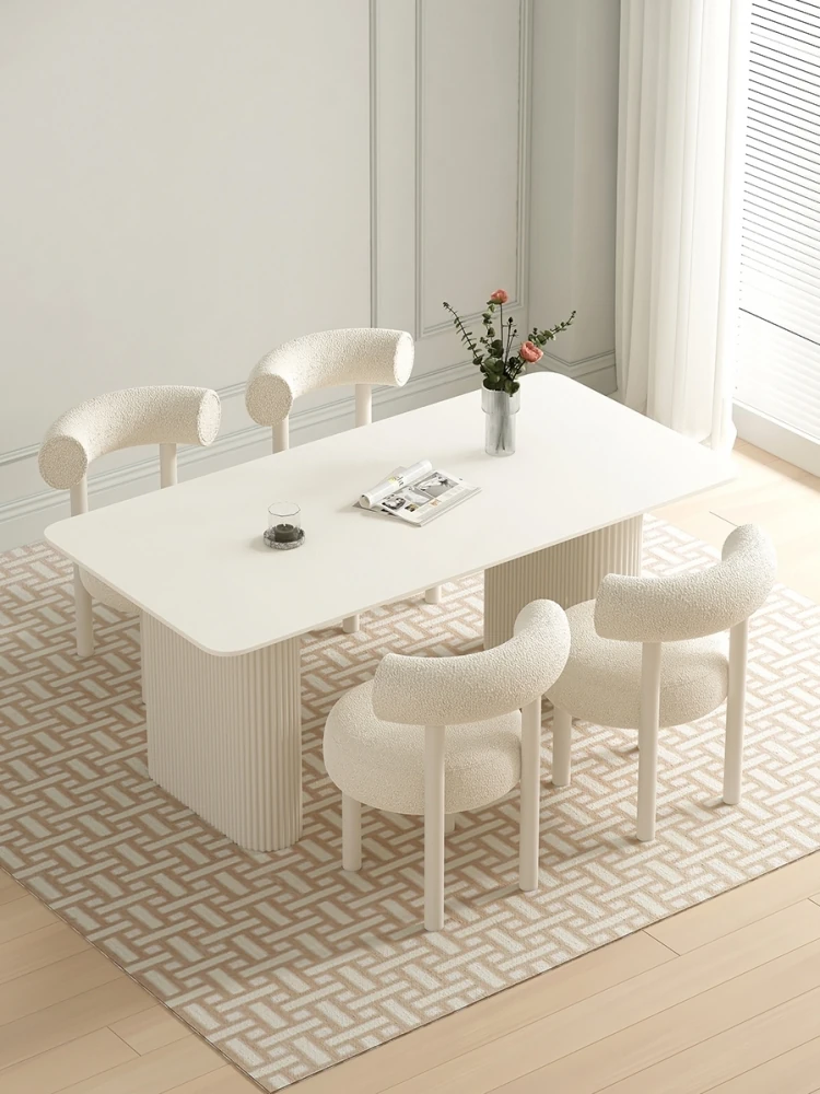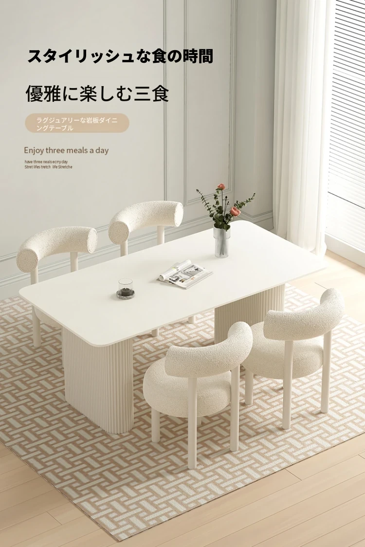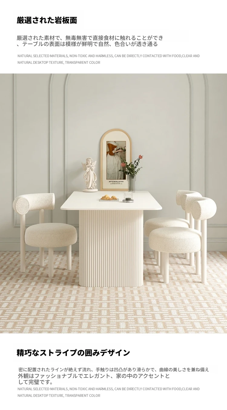 北欧風のライトラグジュアリークリーム色岩板ダイニングテーブル&チェアセット - シンプルでモダンな小型家庭向け長方形テーブル!おしゃれな食卓で特別な時間を演出します。