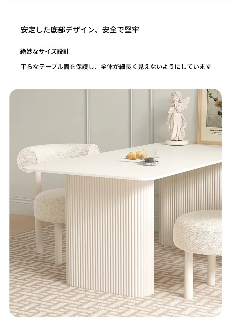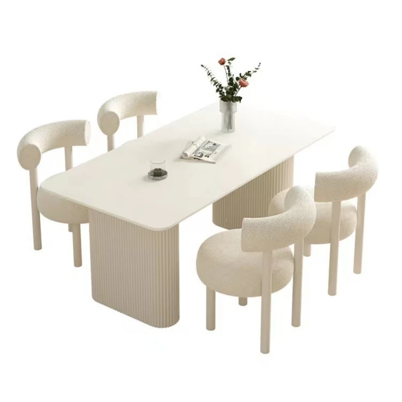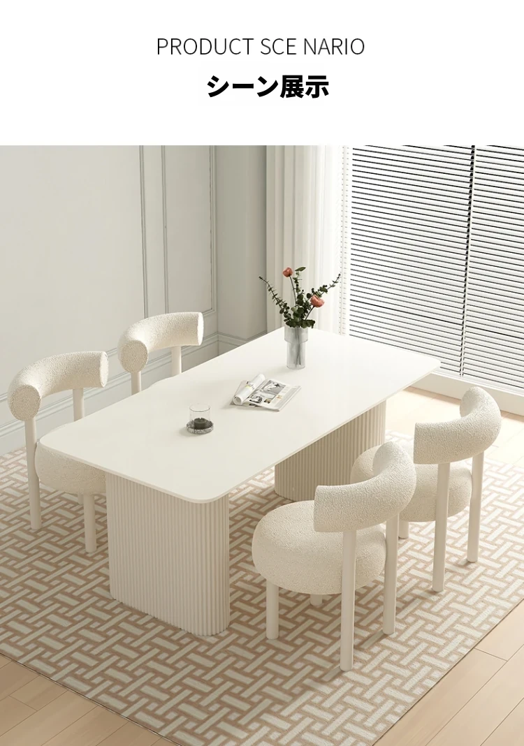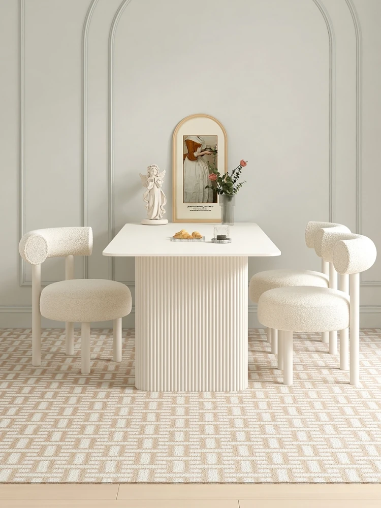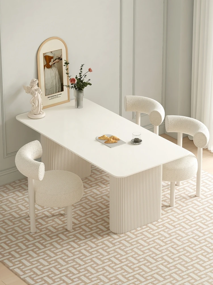 北欧風のライトラグジュアリークリーム色岩板ダイニングテーブル&チェアセット - シンプルでモダンな小型家庭向け長方形テーブル!おしゃれな食卓で特別な時間を演出します。