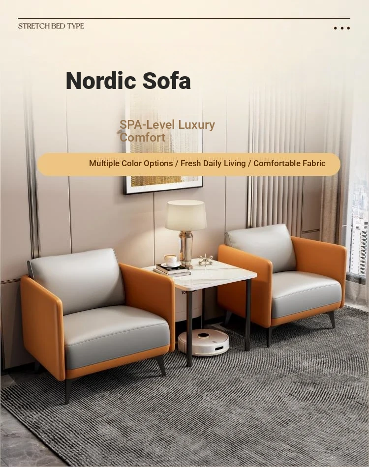 Nordic Minimalist Single Sofa and Coffee Table Set - Perfect for Relaxation Areas, Business Hotels, and Meeting Spaces. Stylish and Functional Seating Solution for Your Reception Area!