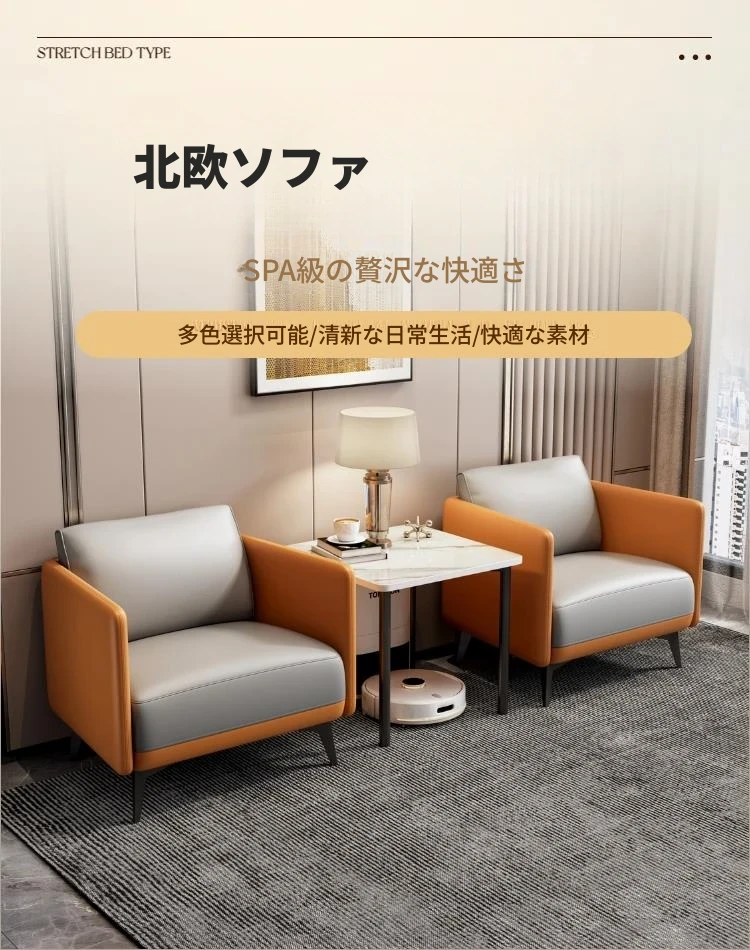 北欧スタイルのシンプルでおしゃれな一人掛けソファとコーヒーテーブルのセット - ビジネスホテルや会議室に最適な休憩エリアを演出!快適な空間でお客様をお迎えしましょう。