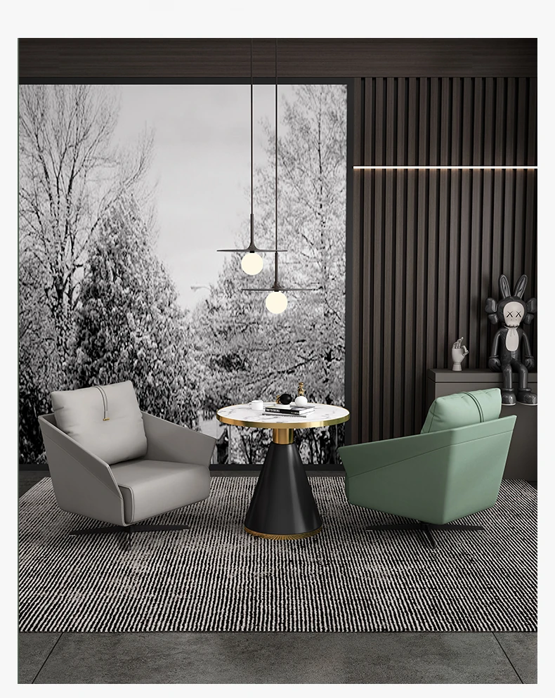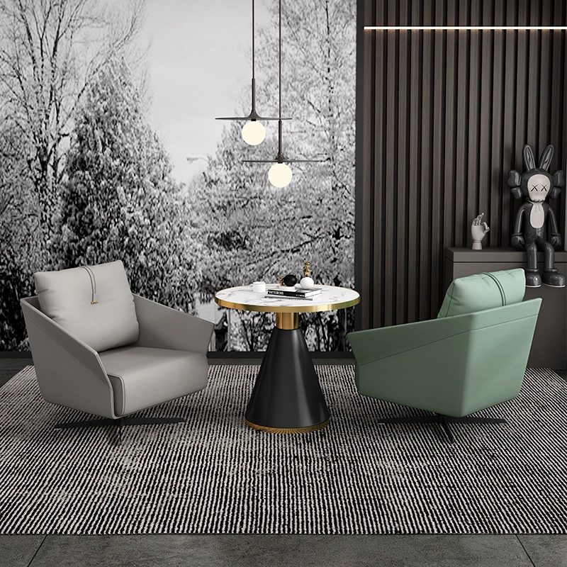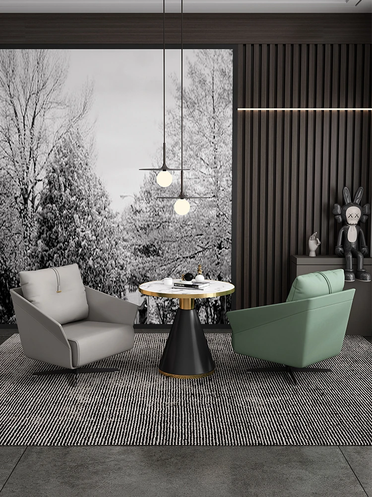 北欧モダン軽奢華シングルリクライニングソファチェア - 売却所に最適なティーテーブルと接客用ダイニングセットのコンビネーション!おしゃれで快適な空間を演出し、ゲストをお迎えするのにぴったりです。
