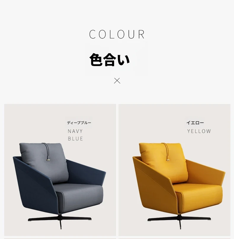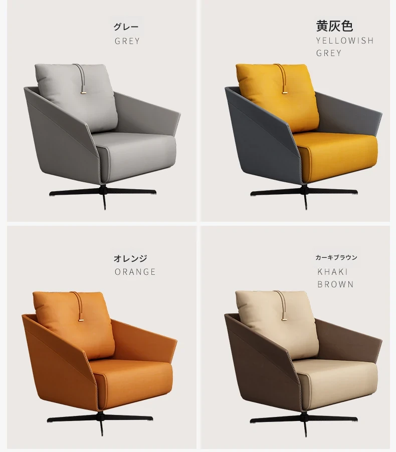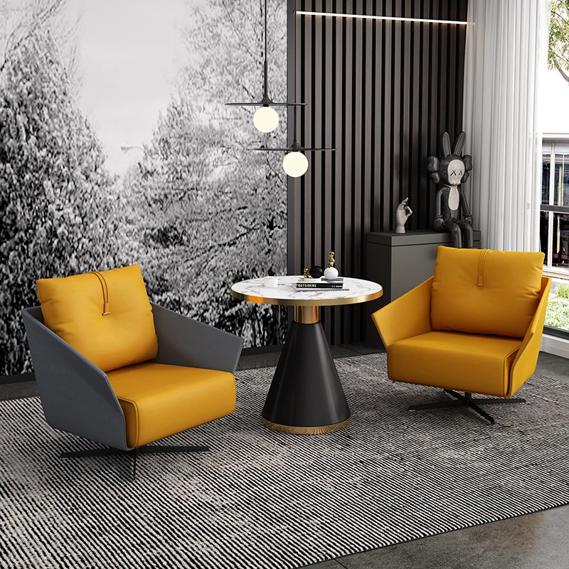 黄灰色の革の椅子+黄色の革の椅子+60CMのテーブル