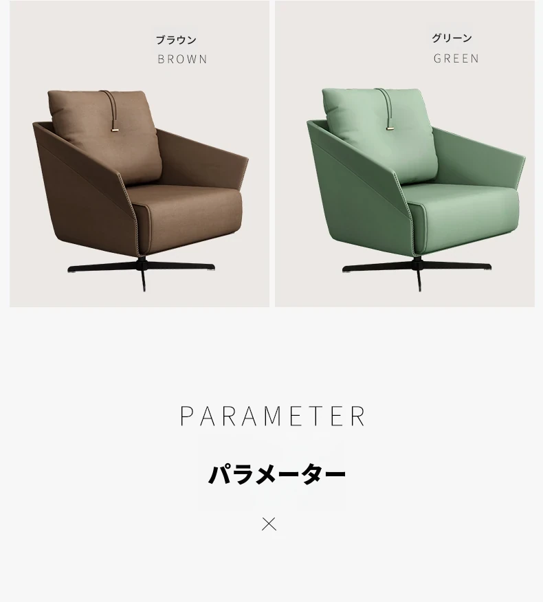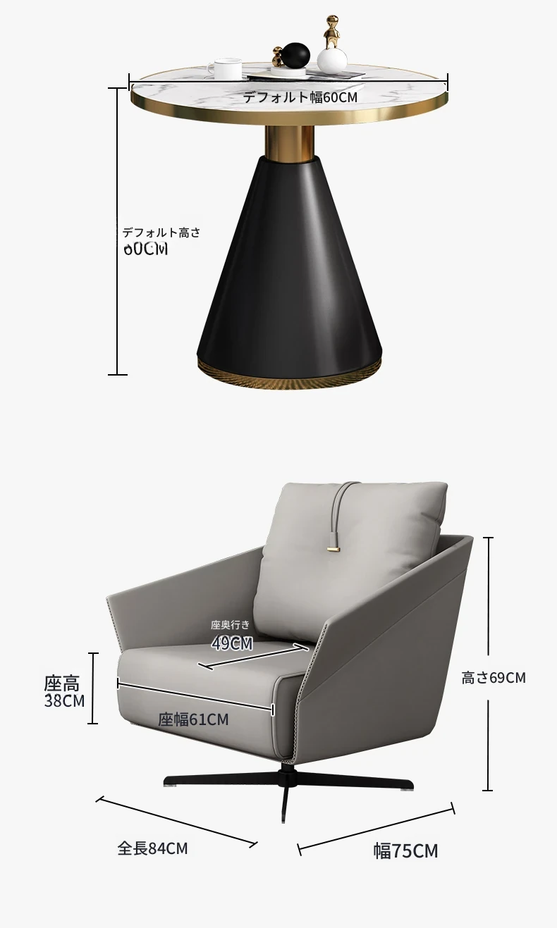 灰色の革の椅子+緑の革の椅子+60CMのテーブル