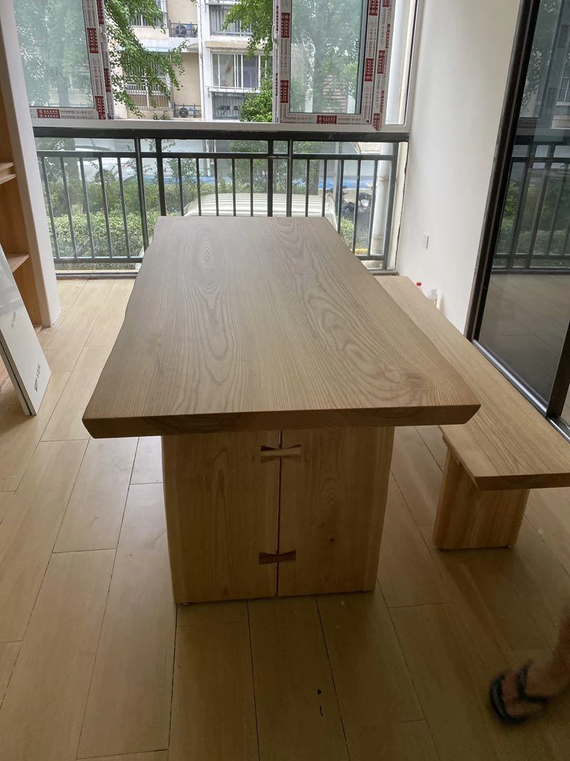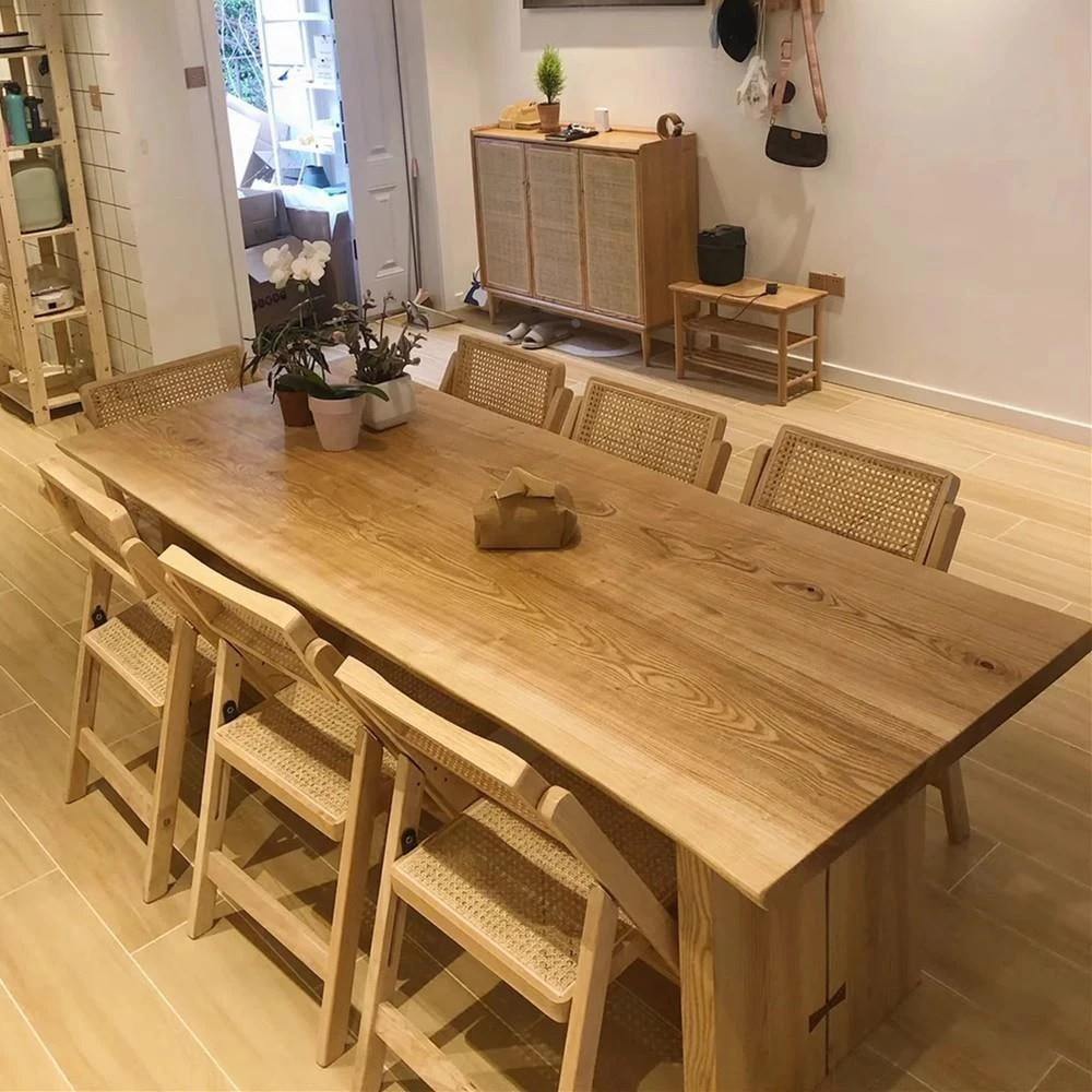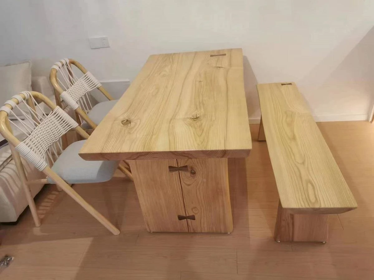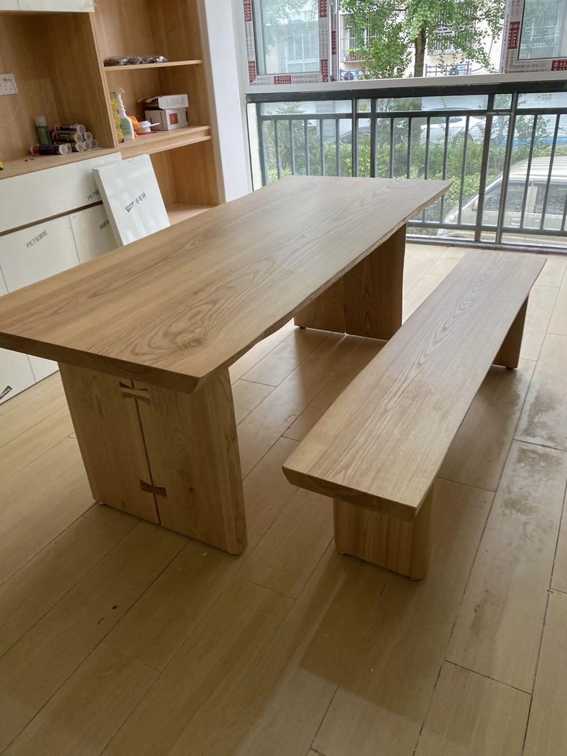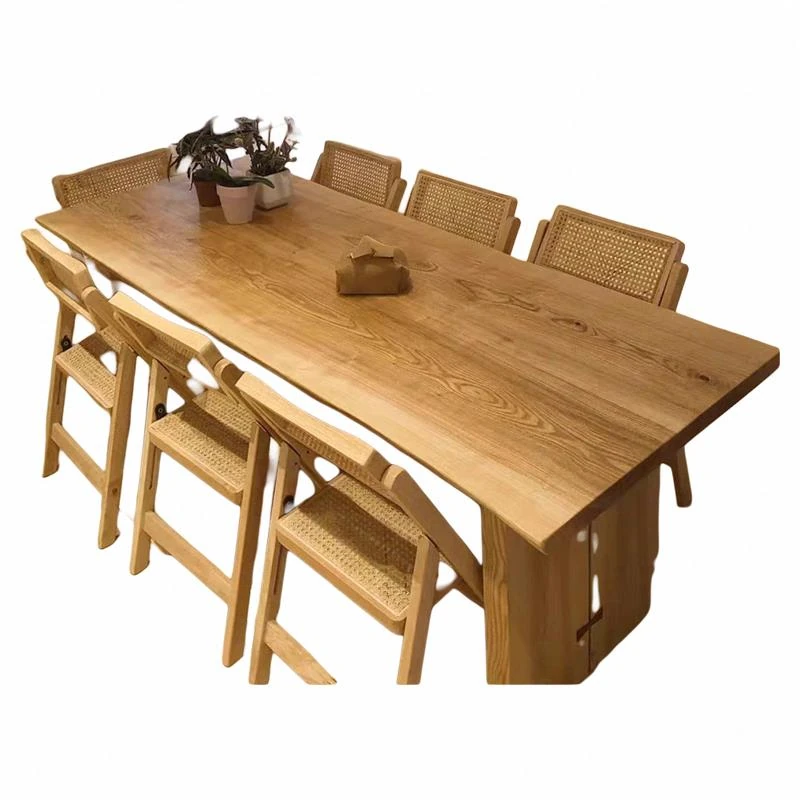 North American Ash Wood Dining Table and Chair Set - Rustic Large Table for Home, Office, and Dining Room - Minimalist Conference and Study Desk