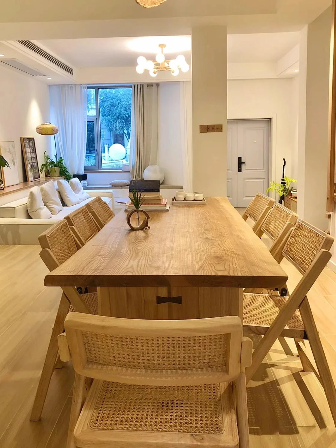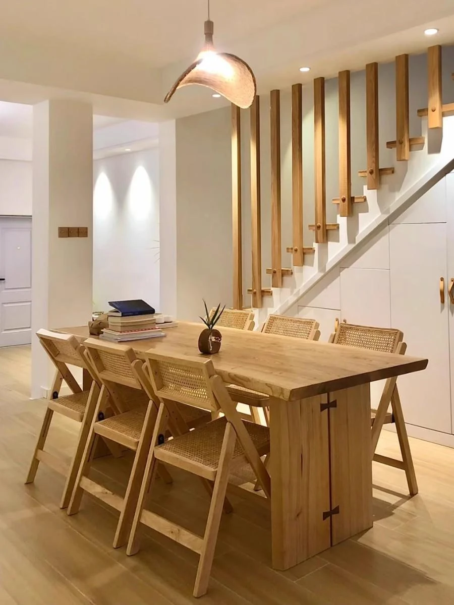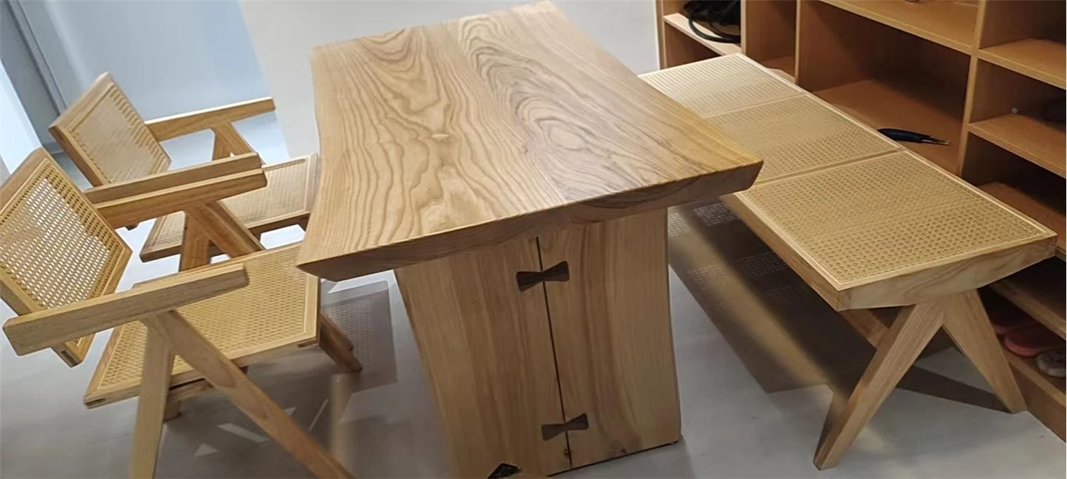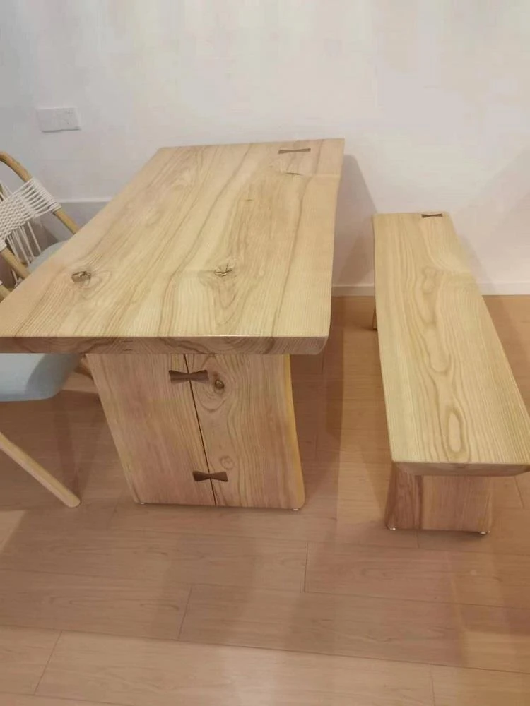 North American Ash Wood Dining Table and Chair Set - Rustic Large Table for Home, Office, and Dining Room - Minimalist Conference and Study Desk
