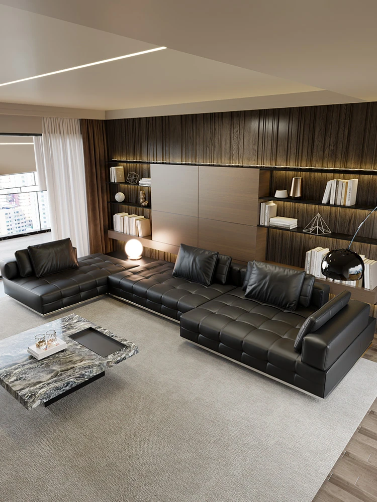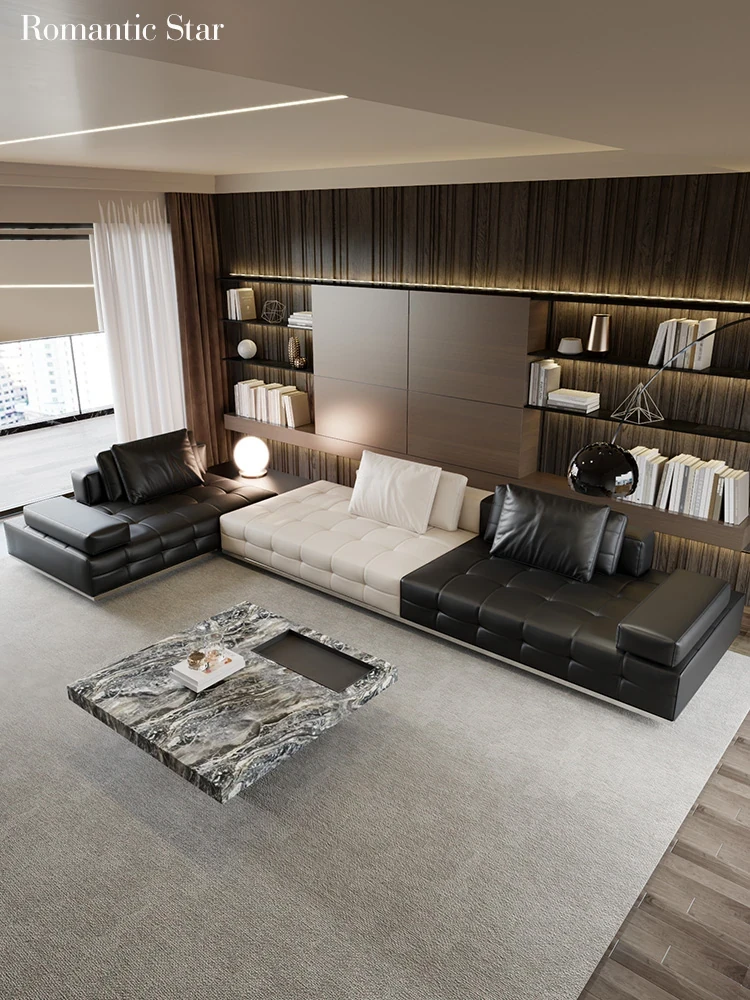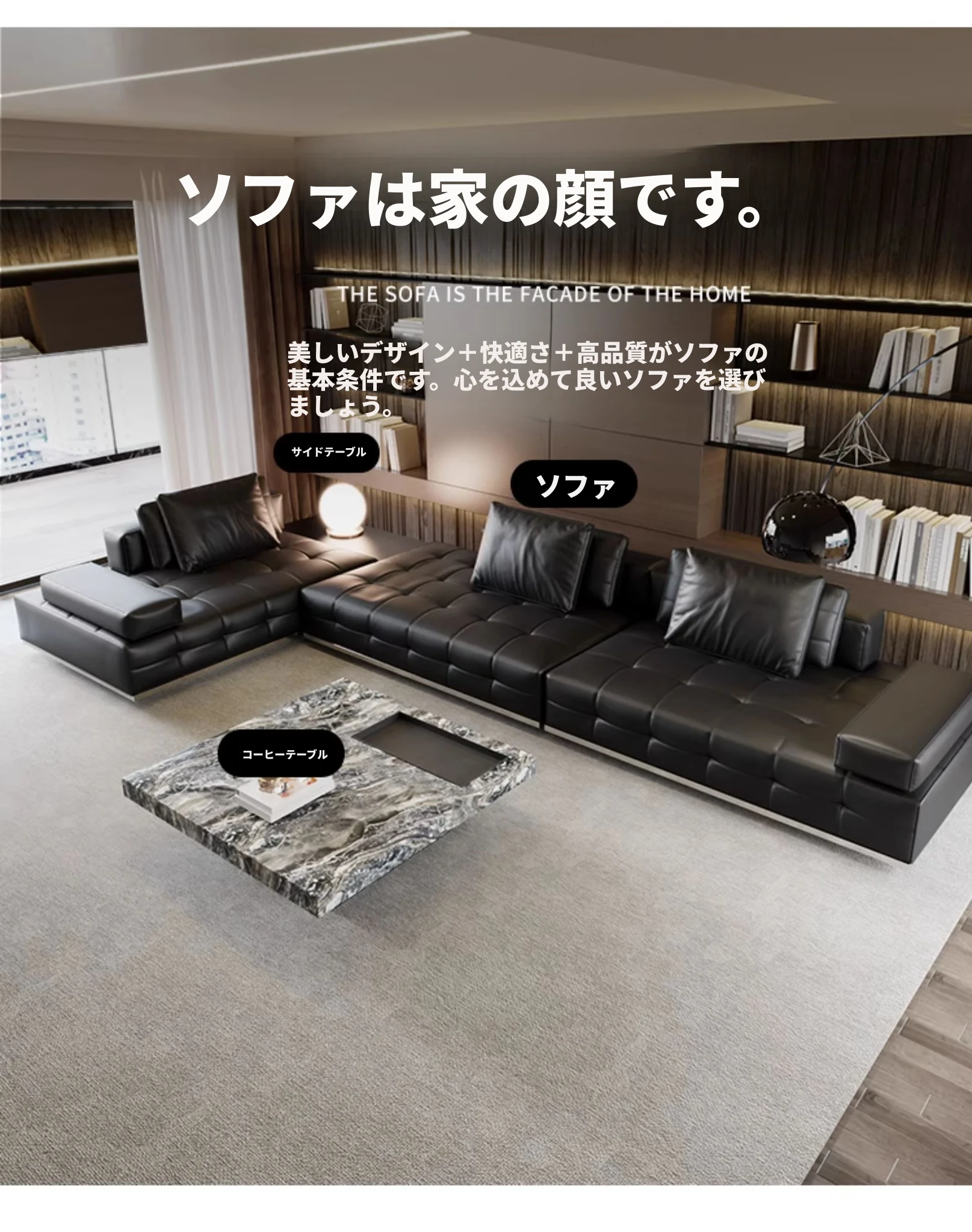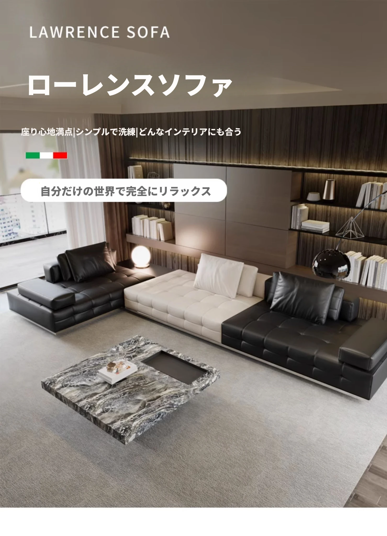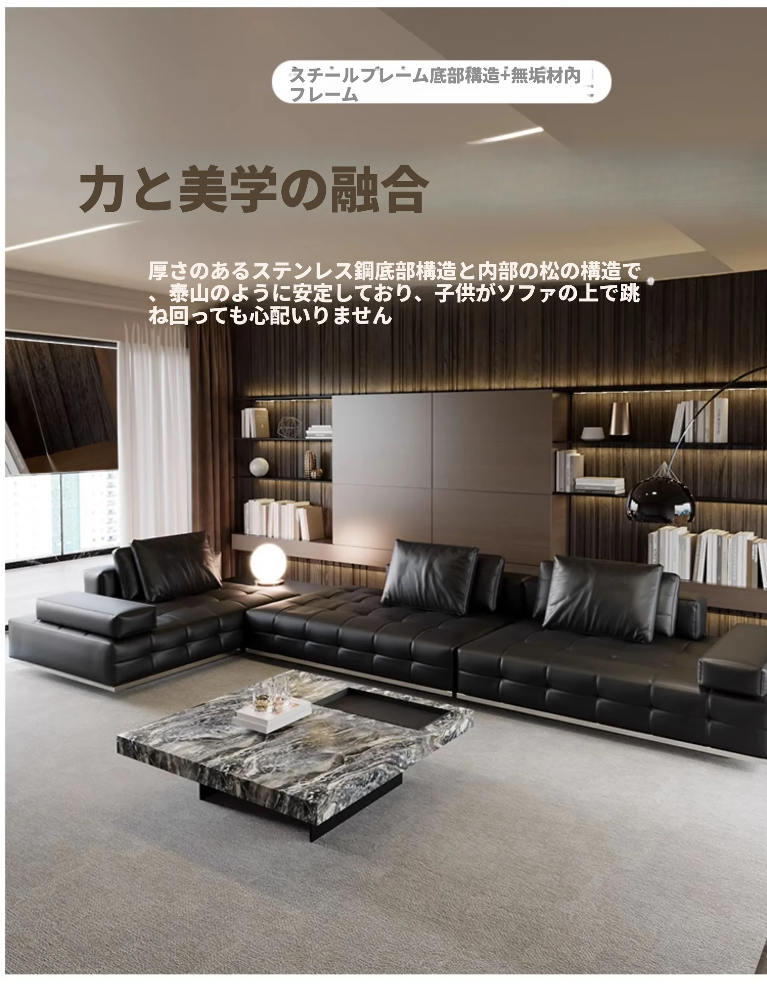 本革使用のラウレンスソファー - 高級感あふれるリビングにぴったりな一体型コーヒーテーブル付き!佛山の家具メーカー直販で、軽やかな贅沢を手に入れましょう。