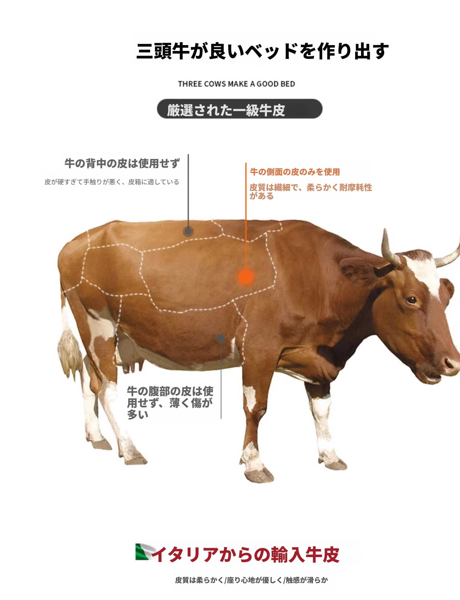 全真皮+非鋼底框 組合A サイドキャビネット付き