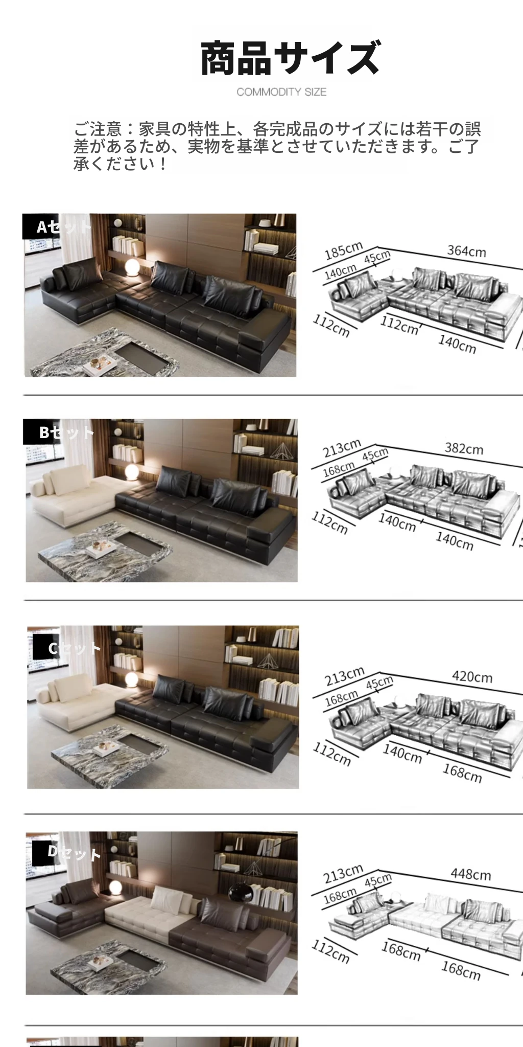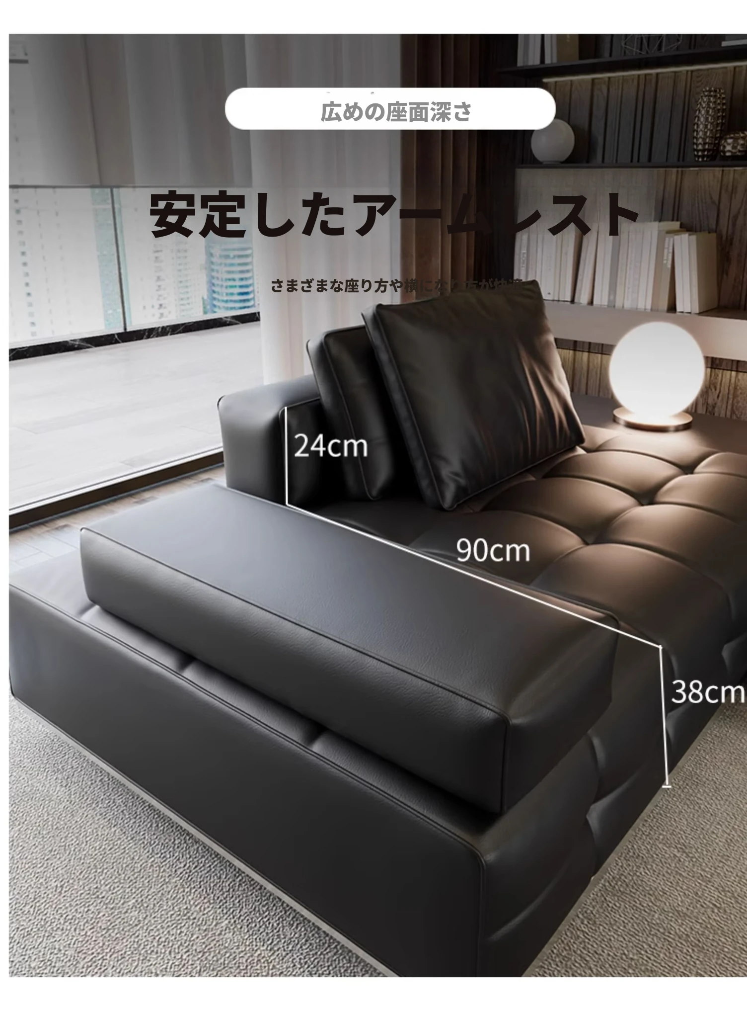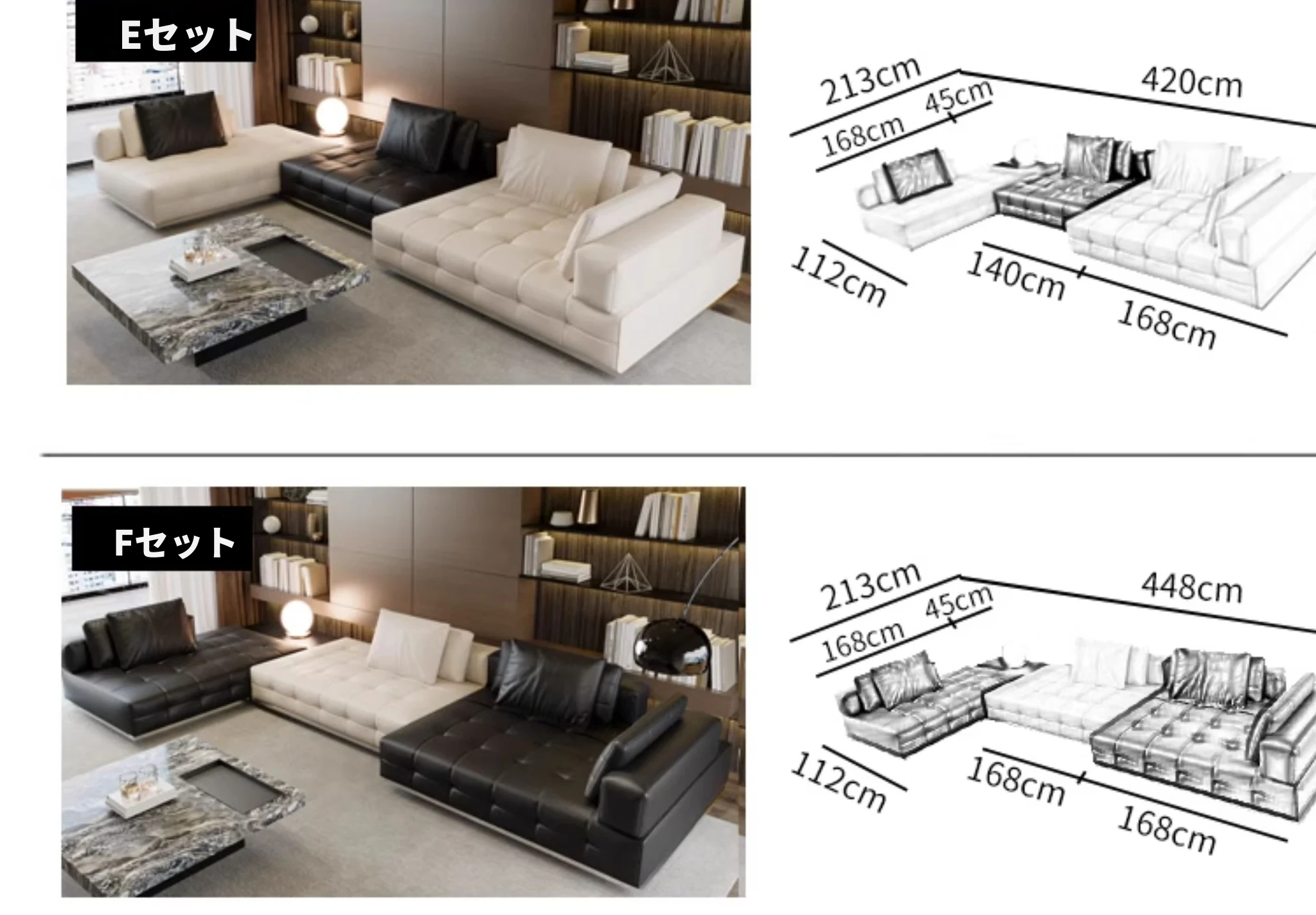 全真皮+非鋼底框 ソファ 組合B サイドキャビネット付き