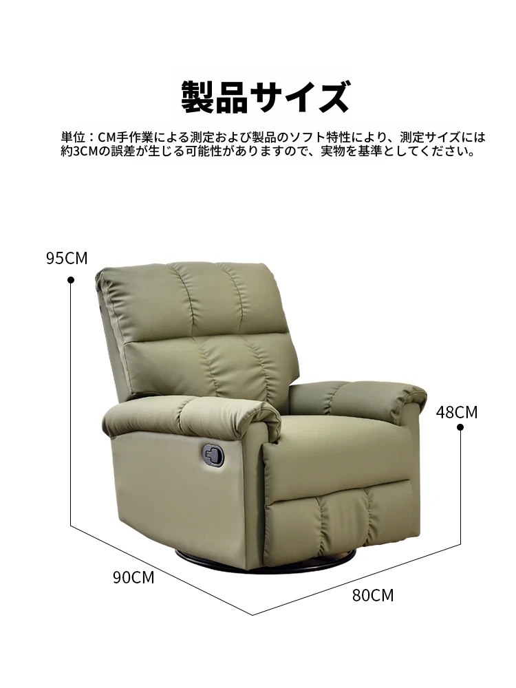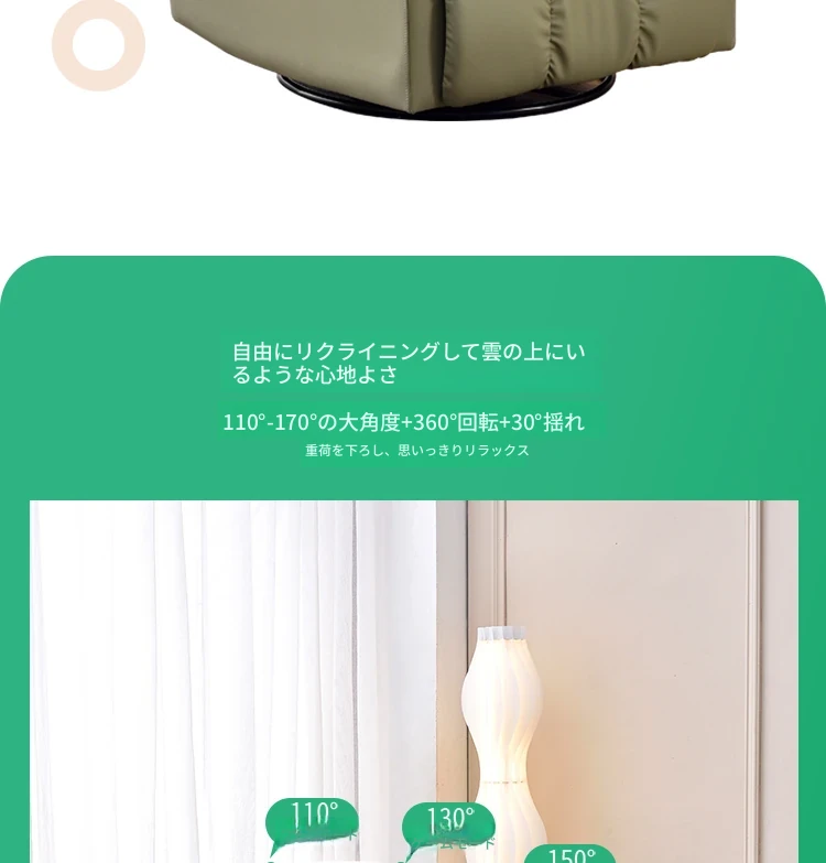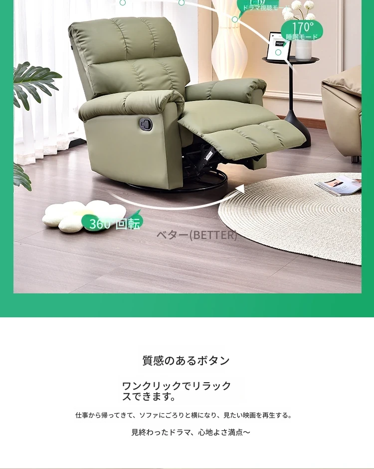 グリーン 手動タイプ リクライニング+揺れ+360°回転