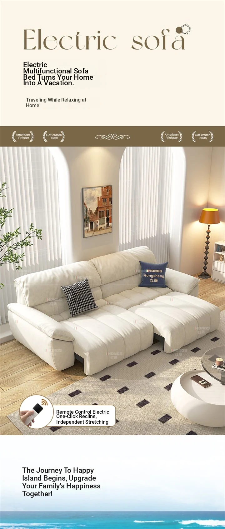 RedSheng Fabric Electric Function Sofa Bed - Versatile Double Sofa for Living Room, New Foldable Design with Wall-Free Functionality, Perfect for Small Spaces