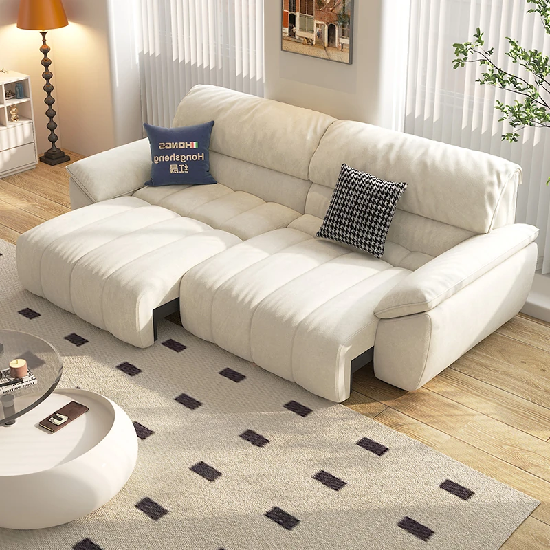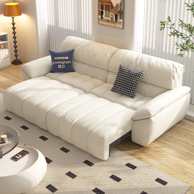 新型紅晟布製電動機能沙發床!雙人設計,完美適應客廳空間,伸縮折疊,零靠牆使用,實現舒適與實用的完美結合!