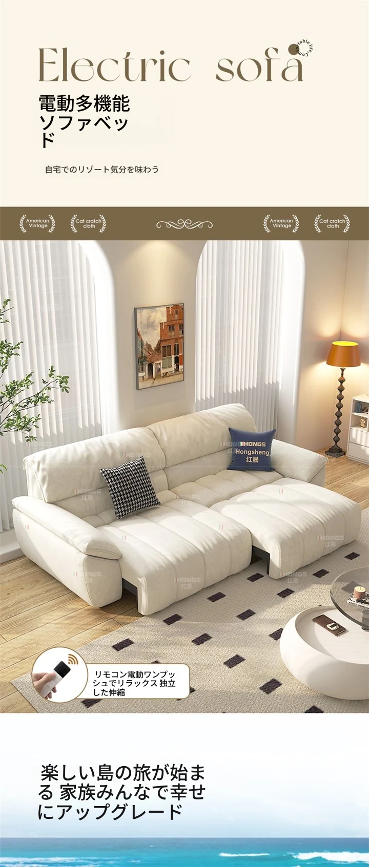 2.25メートル【ダブルモーター】三人用全電動【ラグジュアリー版・Q弾力の座り心地】新世代ベビーフリース(天然ラテックス+高反発ウレタン)