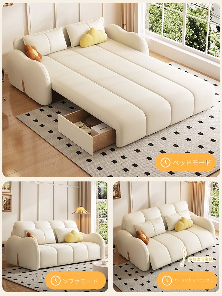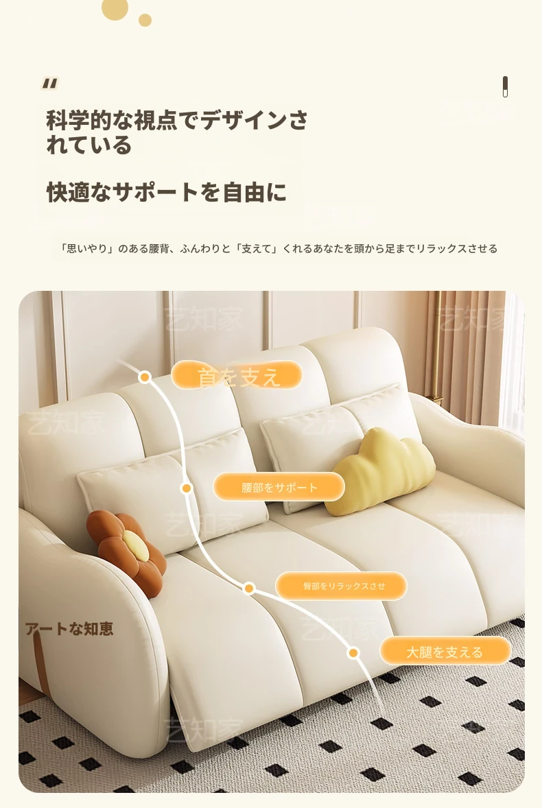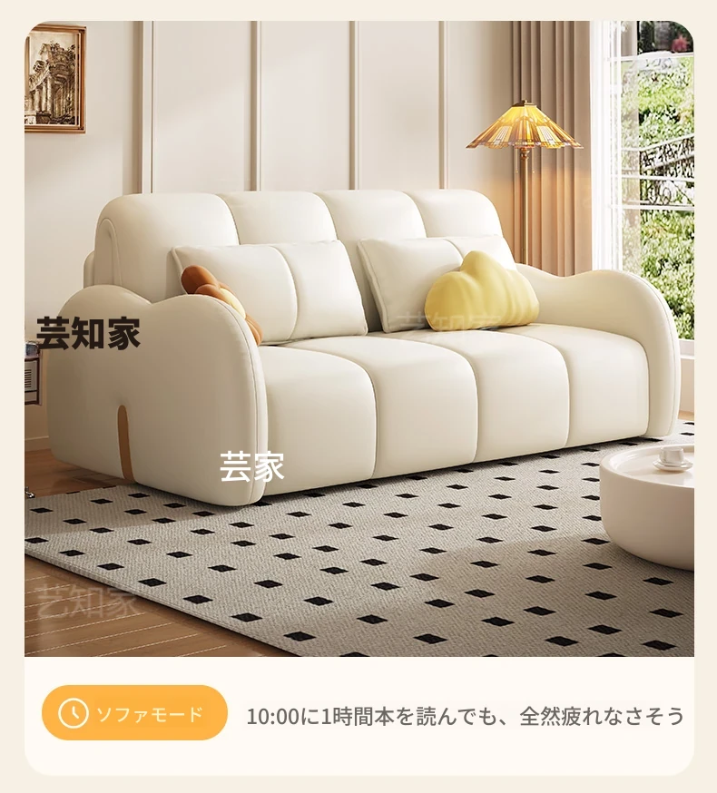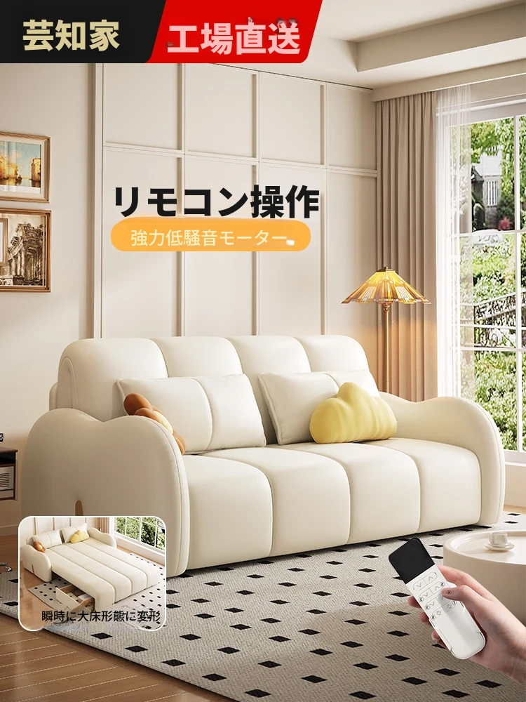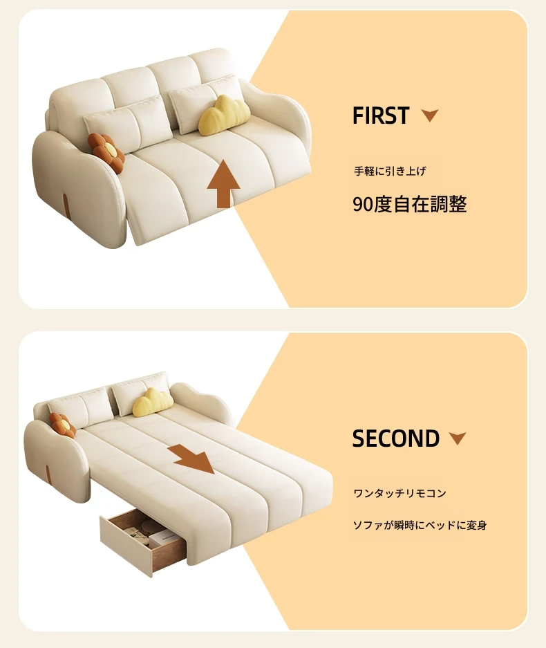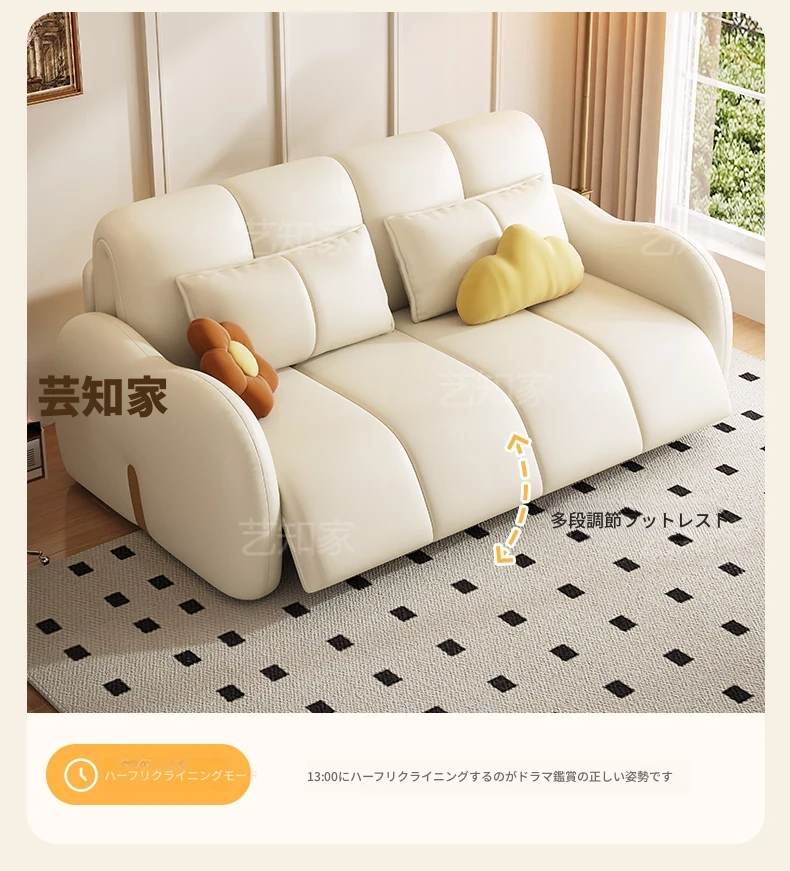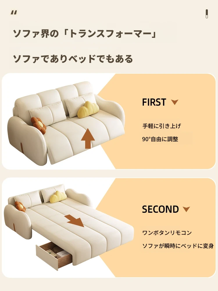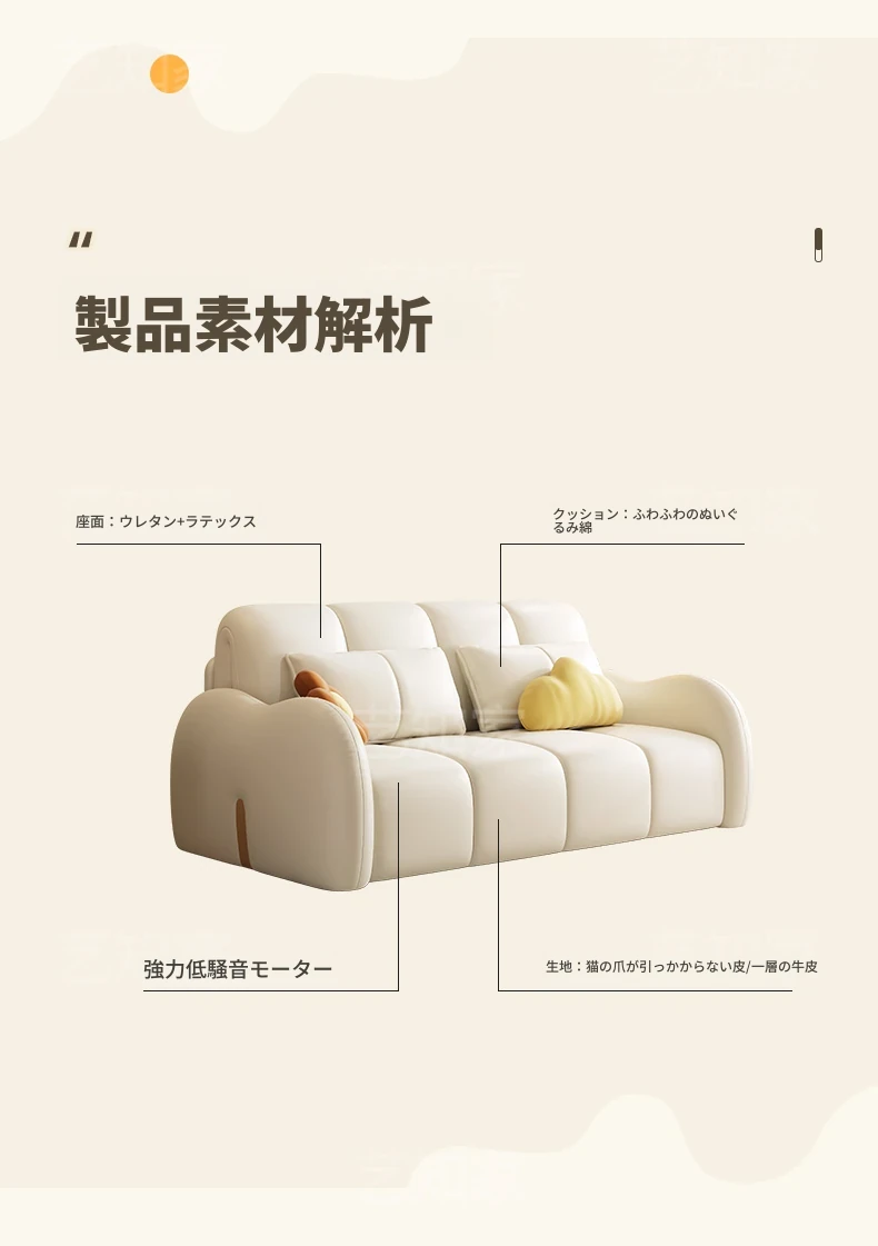 新発売!多機能・折りたたみ式スマート電動クリーム風ソファベッド - 猫の爪にも強い高品質レザー素材。小型アパートや一人暮らしに最適な、スタイリッシュで便利なリビング空間を演出!