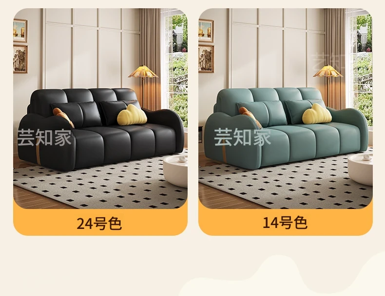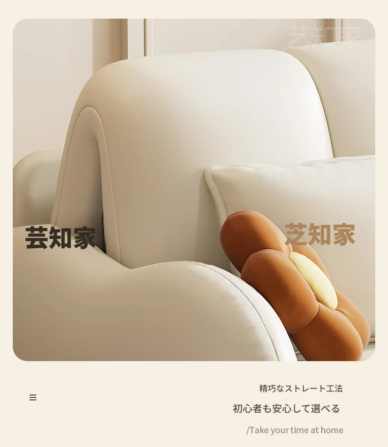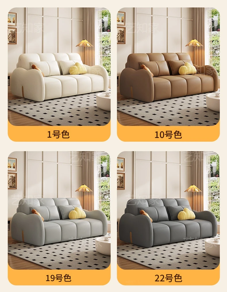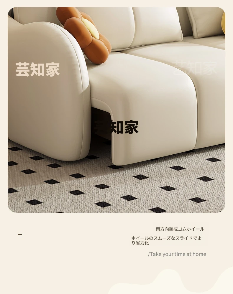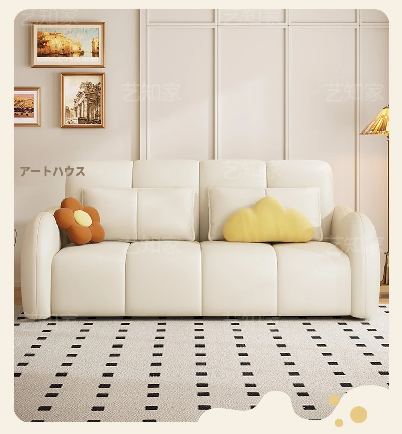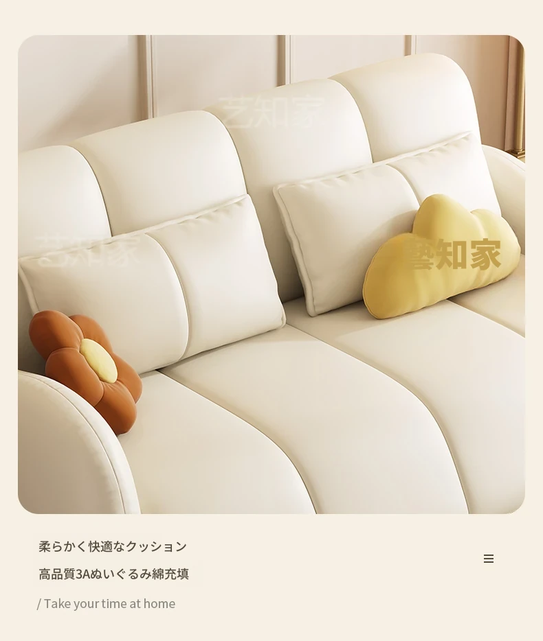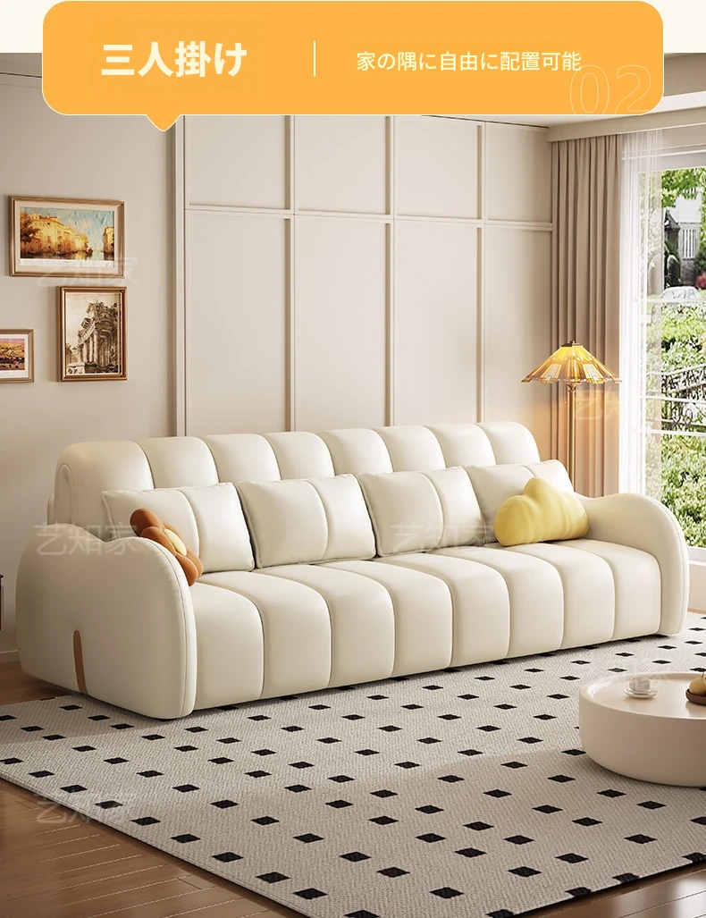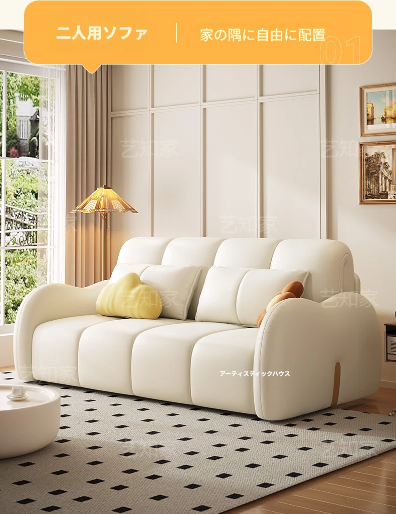 新発売!多機能・折りたたみ式スマート電動クリーム風ソファベッド - 猫の爪にも強い高品質レザー素材。小型アパートや一人暮らしに最適な、スタイリッシュで便利なリビング空間を演出!