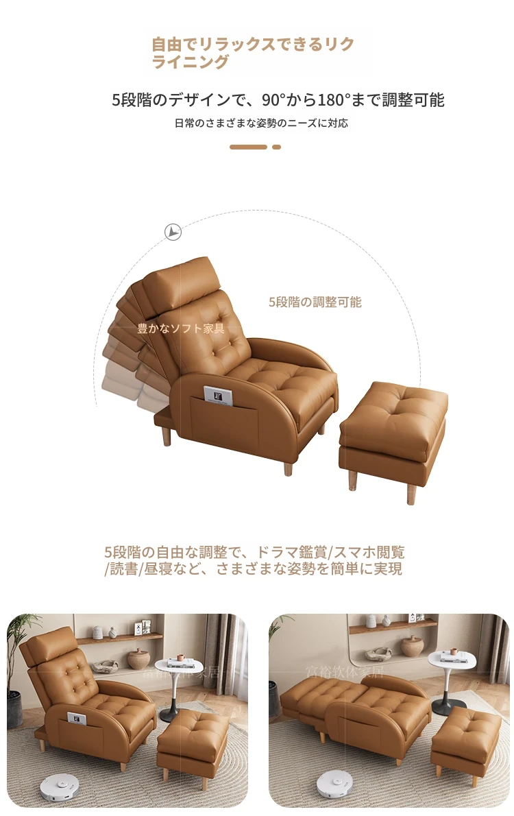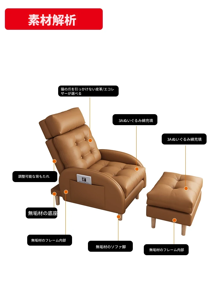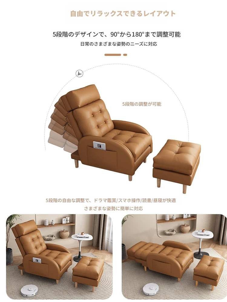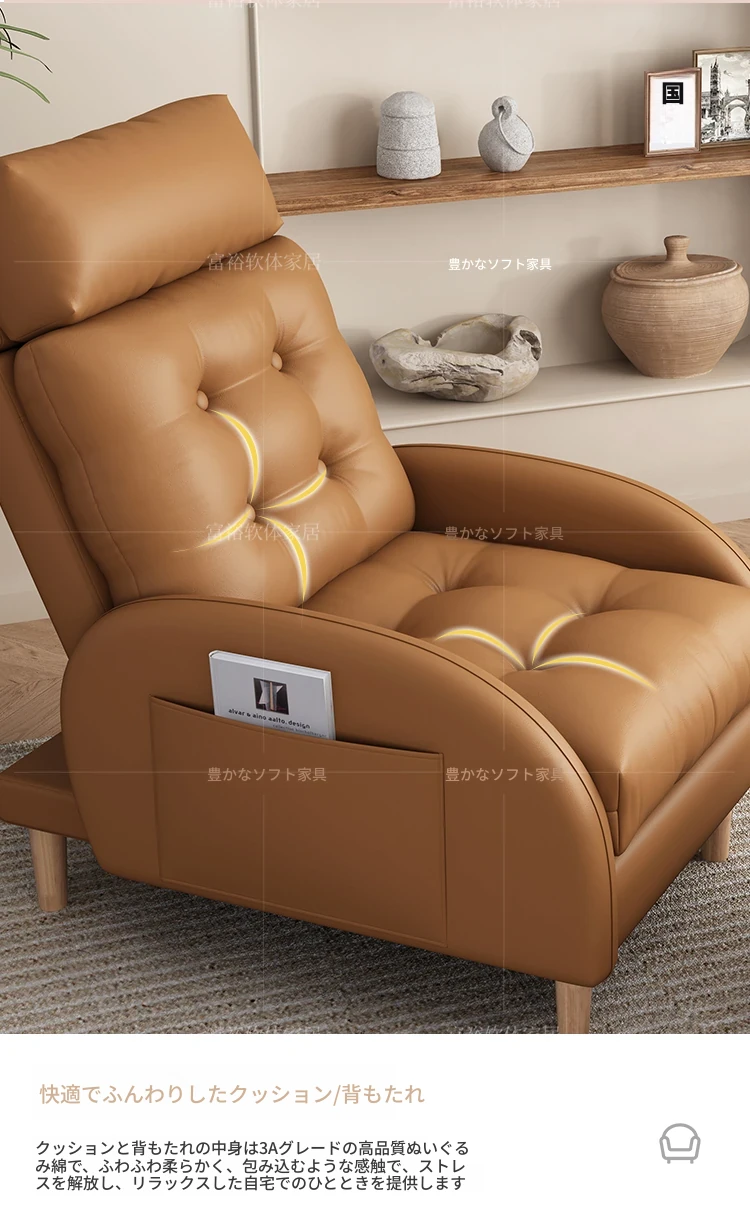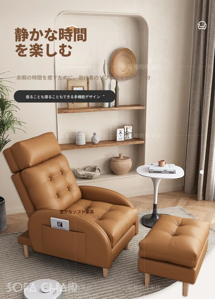 猫が爪を研ぐ皮製のリラックスソファ!おしゃれな小型アパートやバルコニーにぴったりな一人掛けソファ。寝転がれる折りたたみ式で、真皮使用。快適さとデザインを兼ね備えたアイテムです!