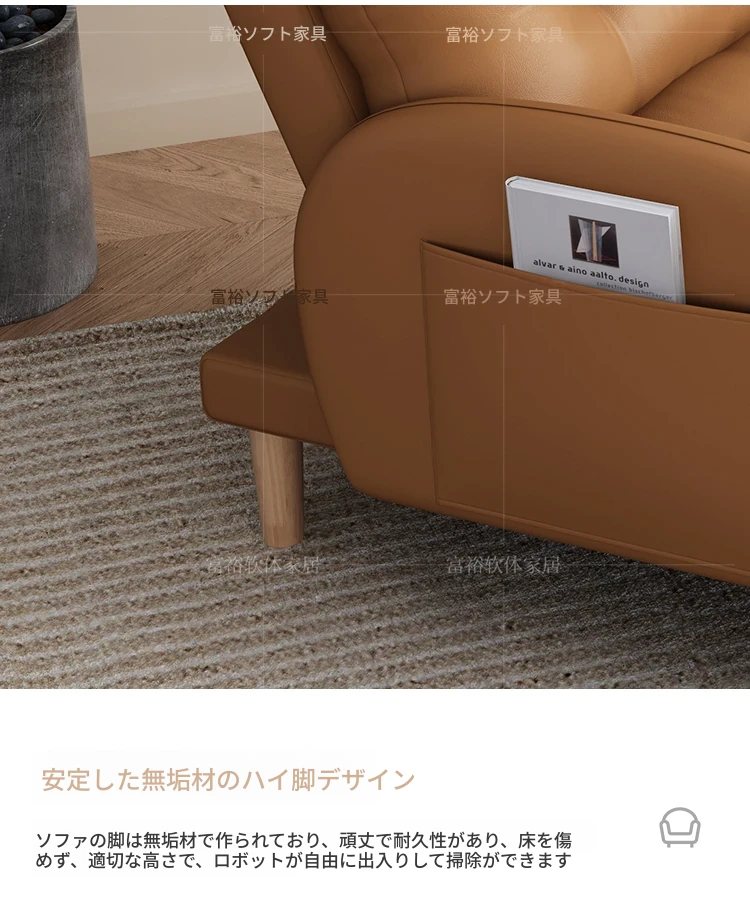 オレンジ色【キャットスクラッチレザー】+フットレスト--通常タイプ 耐傷性に優れ手入れが簡単