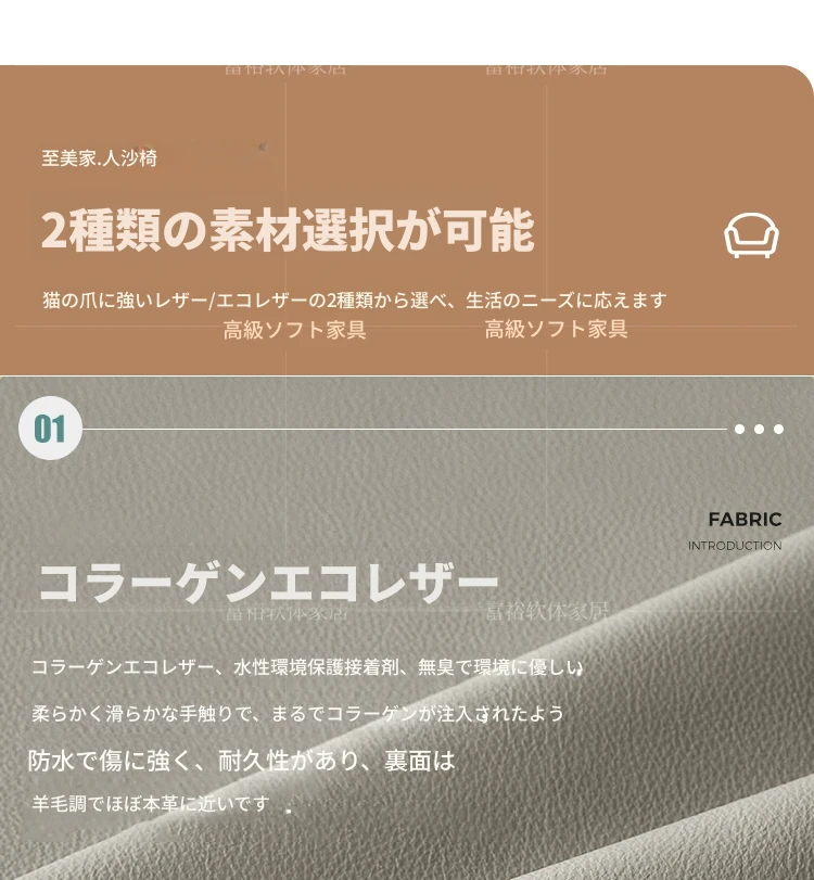 クリーム色【キャットスクラッチレザー】+フットレスト--通常タイプ 耐傷性に優れ手入れが簡単