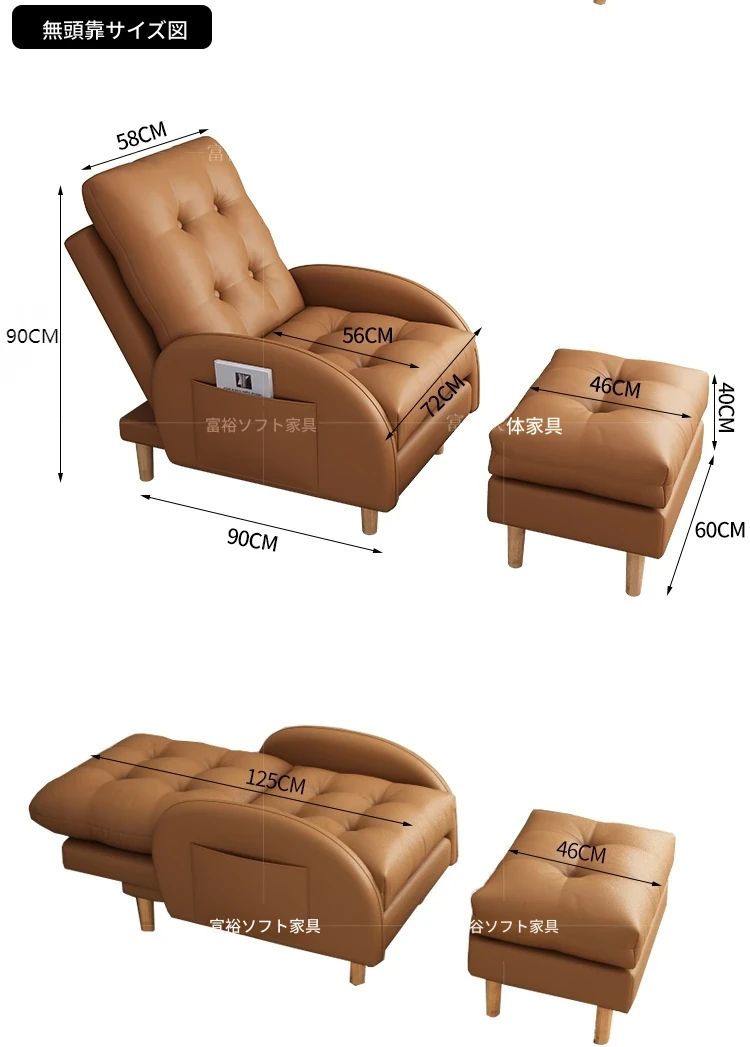 茶色【エコレザー】+フットレスト--ヘッドレストタイプ 環境に優しい防水耐傷