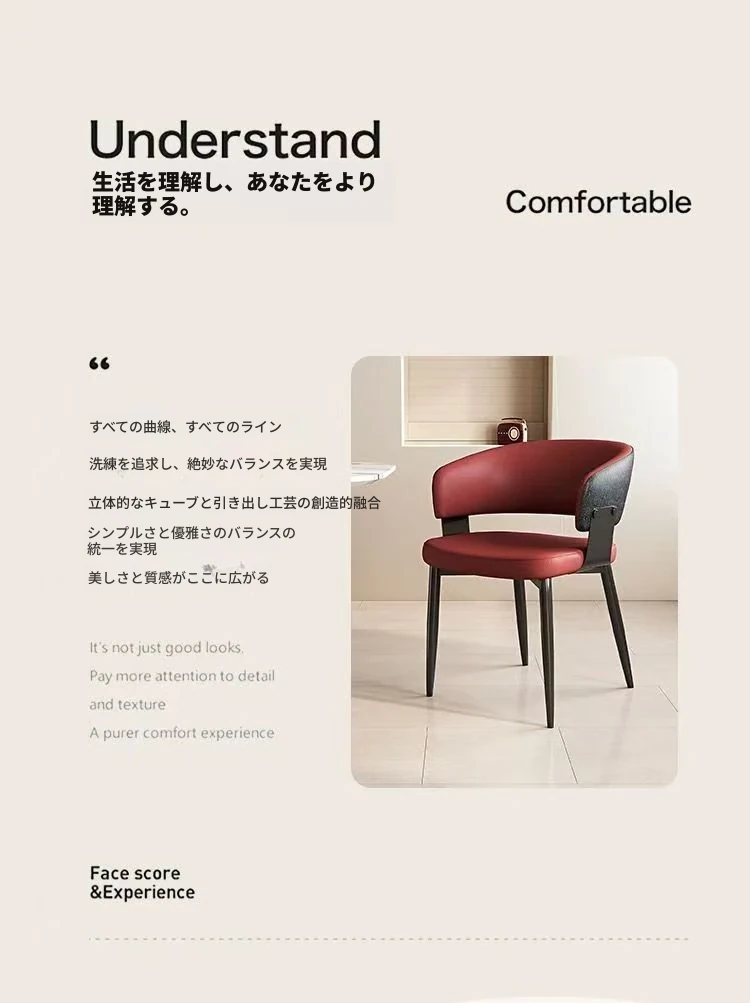 イタリアンシンプルモダンチェア|北欧スタイルの家庭用軽奢レストラン用ダイニングチェア|背もたれ付きの浮遊感あるクリエイティブスツール|おしゃれで快適な食卓を演出!